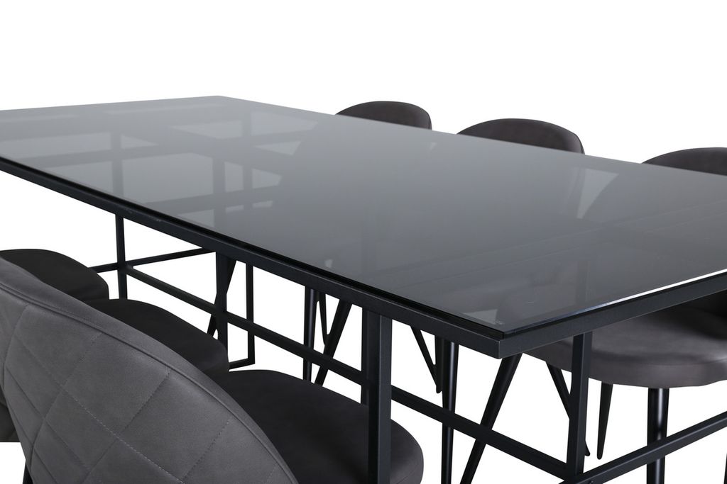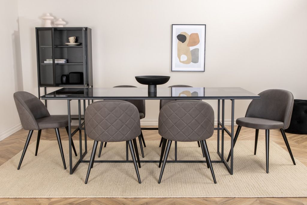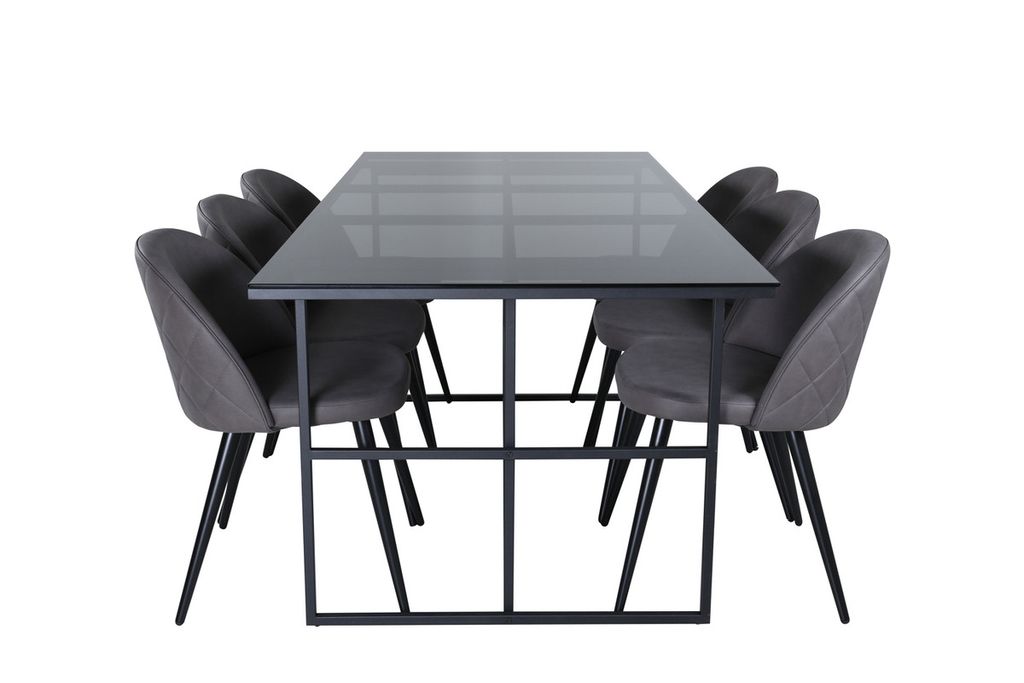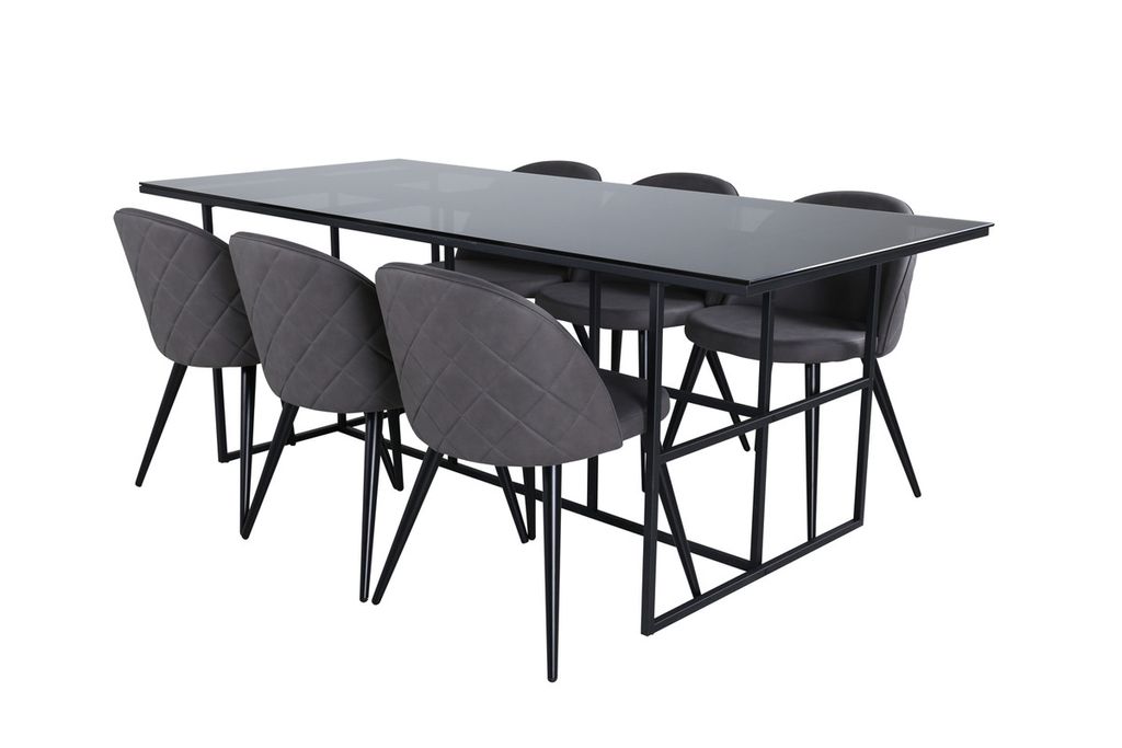 Venture Home Leif & Velvet Rektangulärt Matbord 200 x 90 Svart + 6 st Matstolar Grå