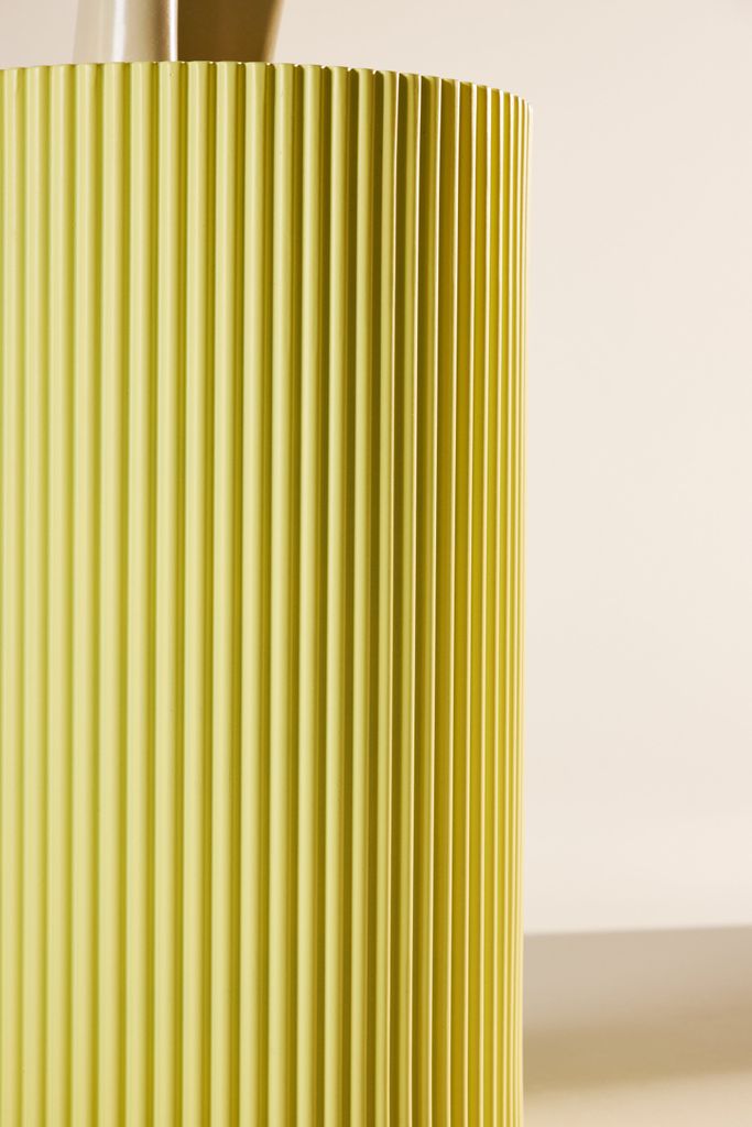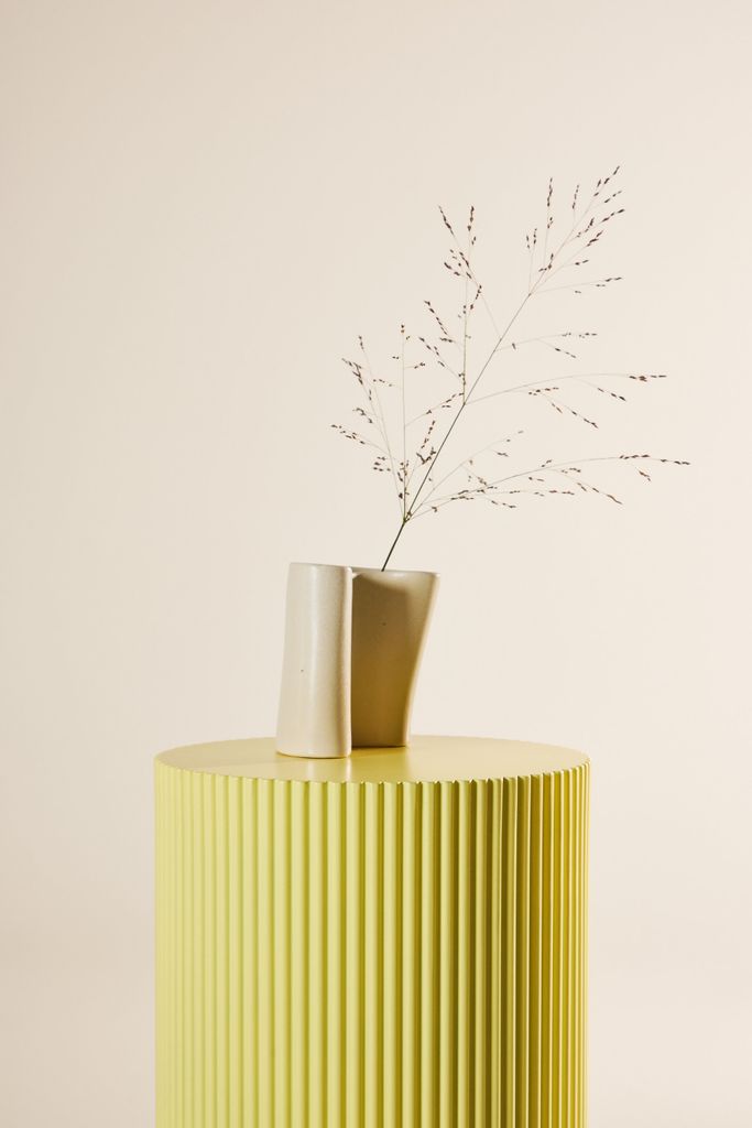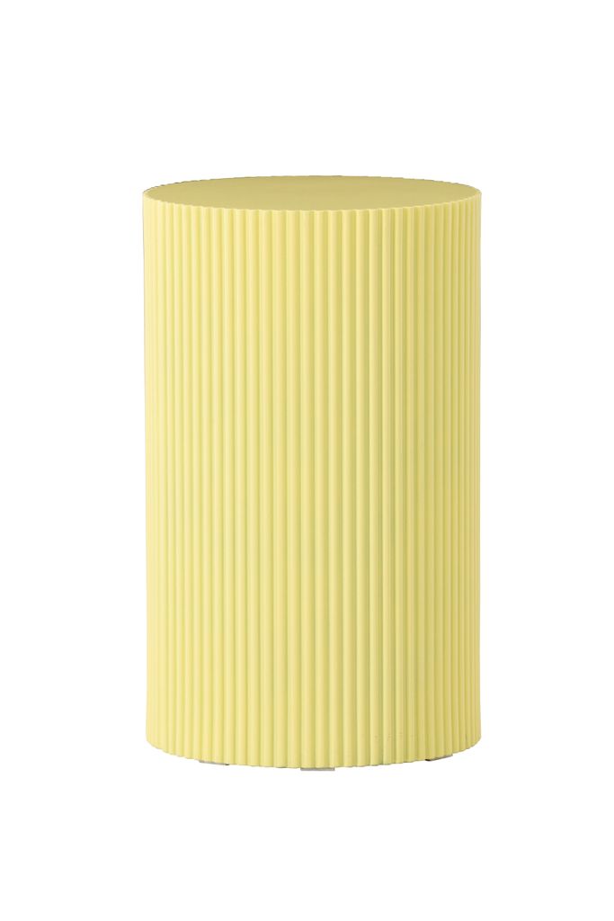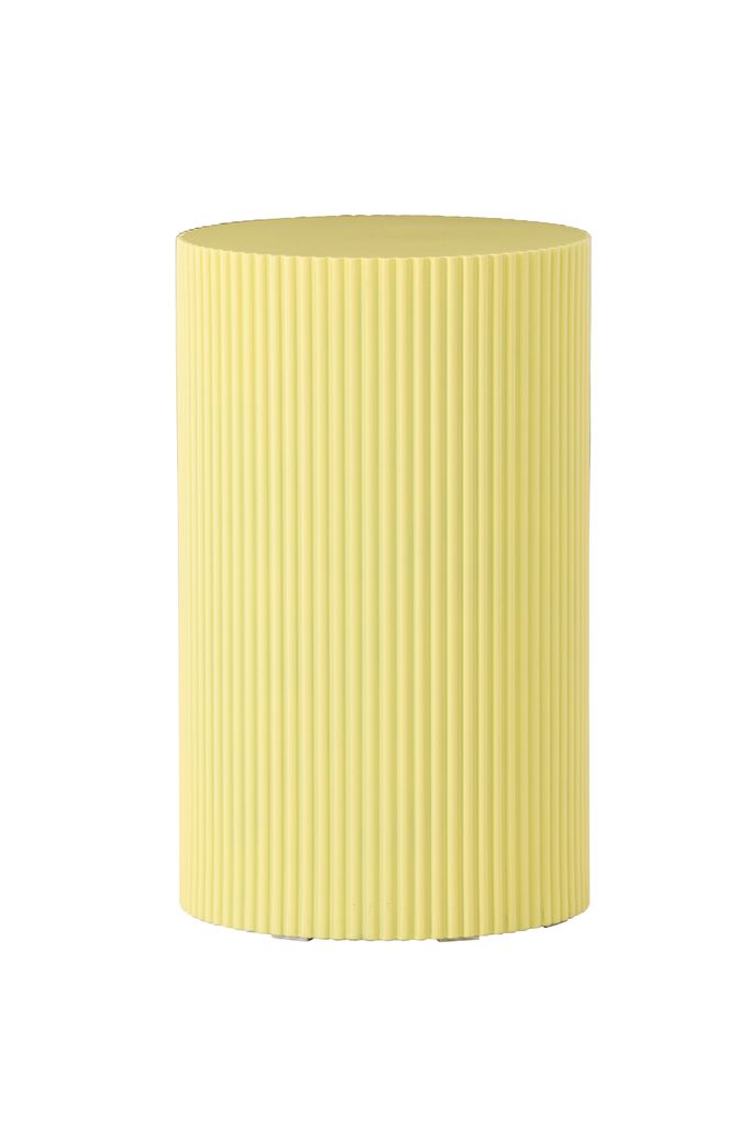Lenox är designat med en rund form och en distinkt räfflad yta som tillför textural rikedom och elegans. Den ljusgula färgen skapar en harmonisk och inbjudande atmosfär, samtidigt som den kontrasterar vackert med andra inredningsdetaljer.