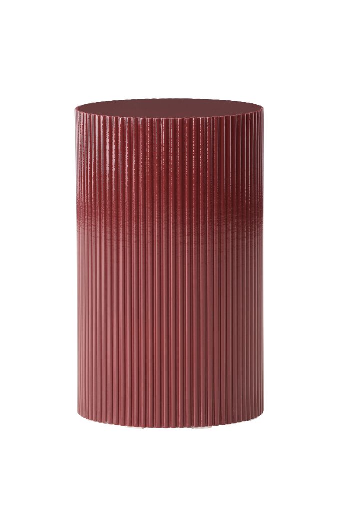 Elegant vinrött sidobord med räfflad yta och hållbar MDF-konstruktion för stil och funktion.