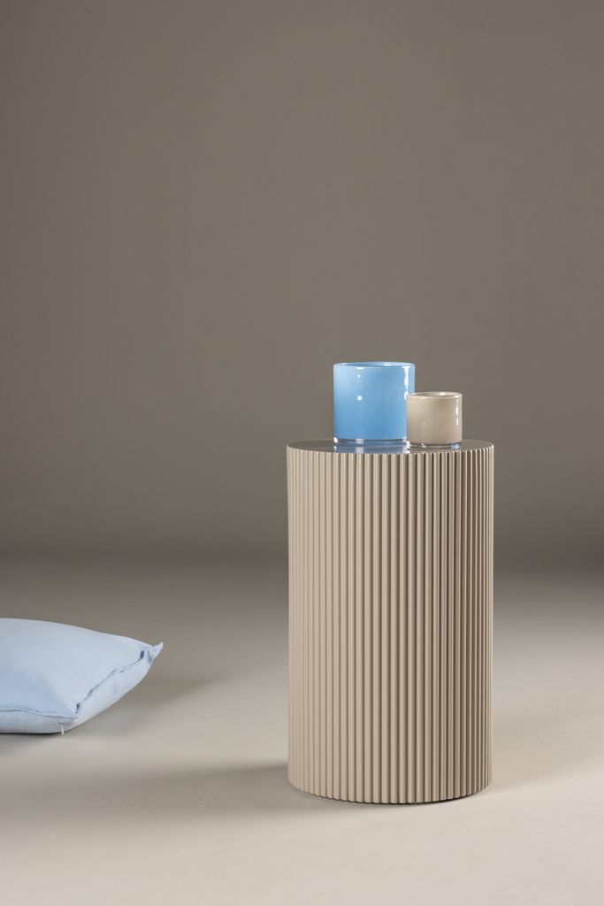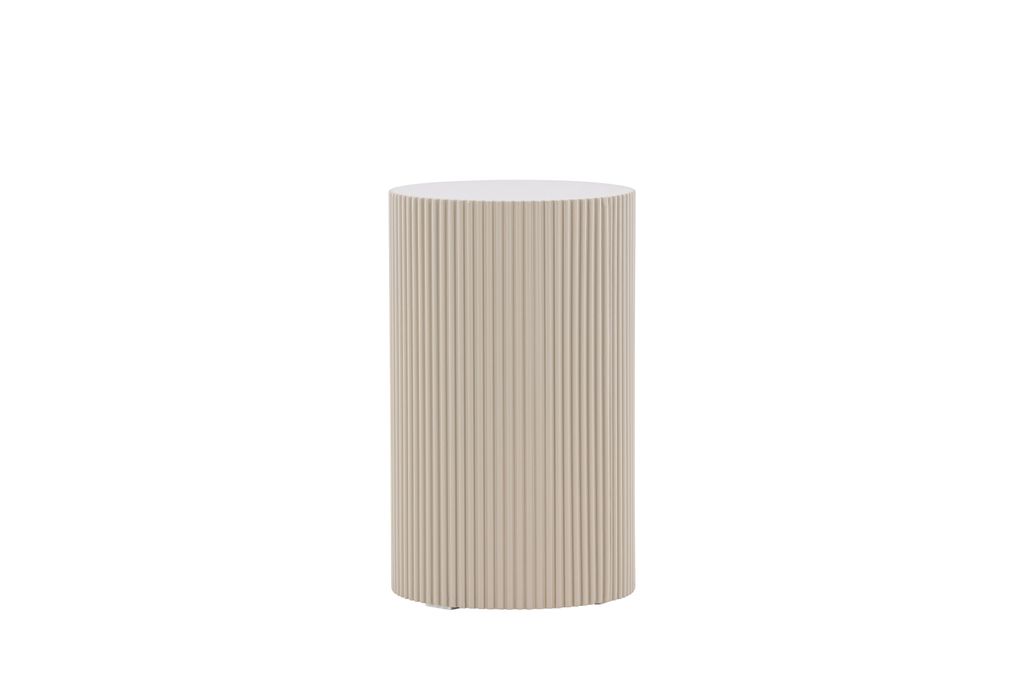 Lenox sidobord i beige MDF, 50 cm högt och 31 cm i diameter. Elegant och trendig design.