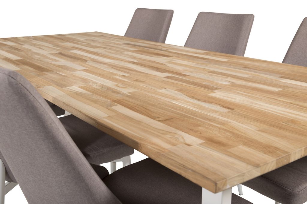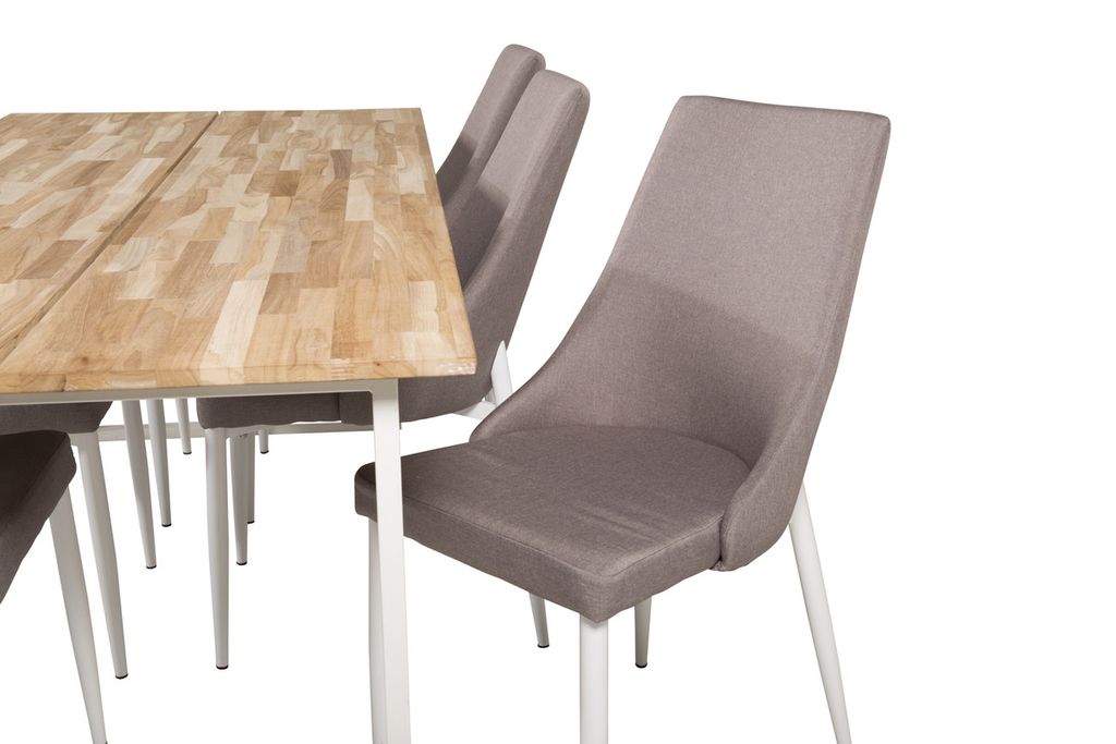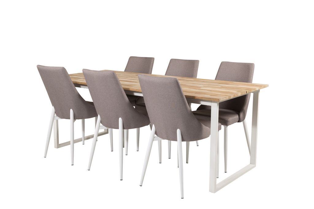 Venture Home Leone & Cirebon 6 st Matstolar Grå + Rektangulärt Matbord 200 x 90 Natur