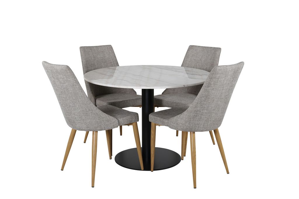 Venture Home Leone & Estelle 4 st Matstolar Ljusgrå + Runt Matbord ⌀106 Vit