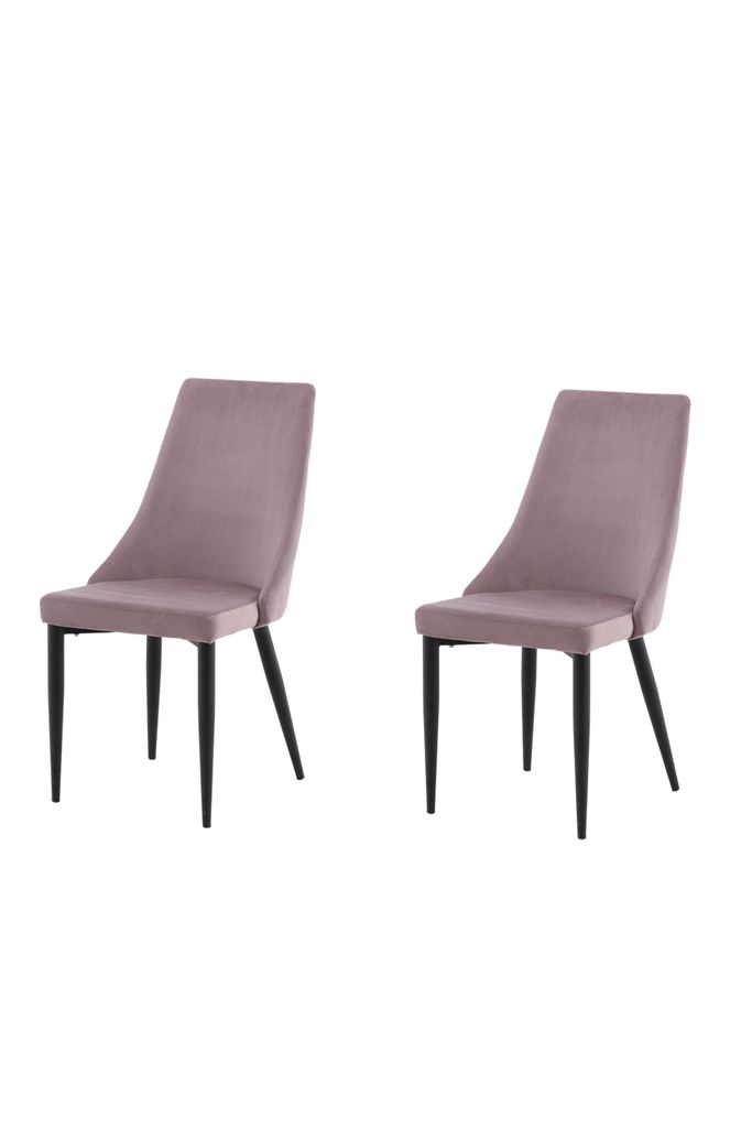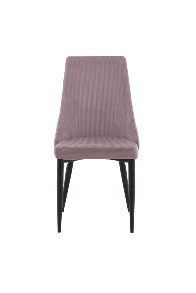Trendiga matstolar i gammelrosa manchestertyg med svart metallben. Skapar en gemytlig atmosfär och erbjuder hög komfort.
