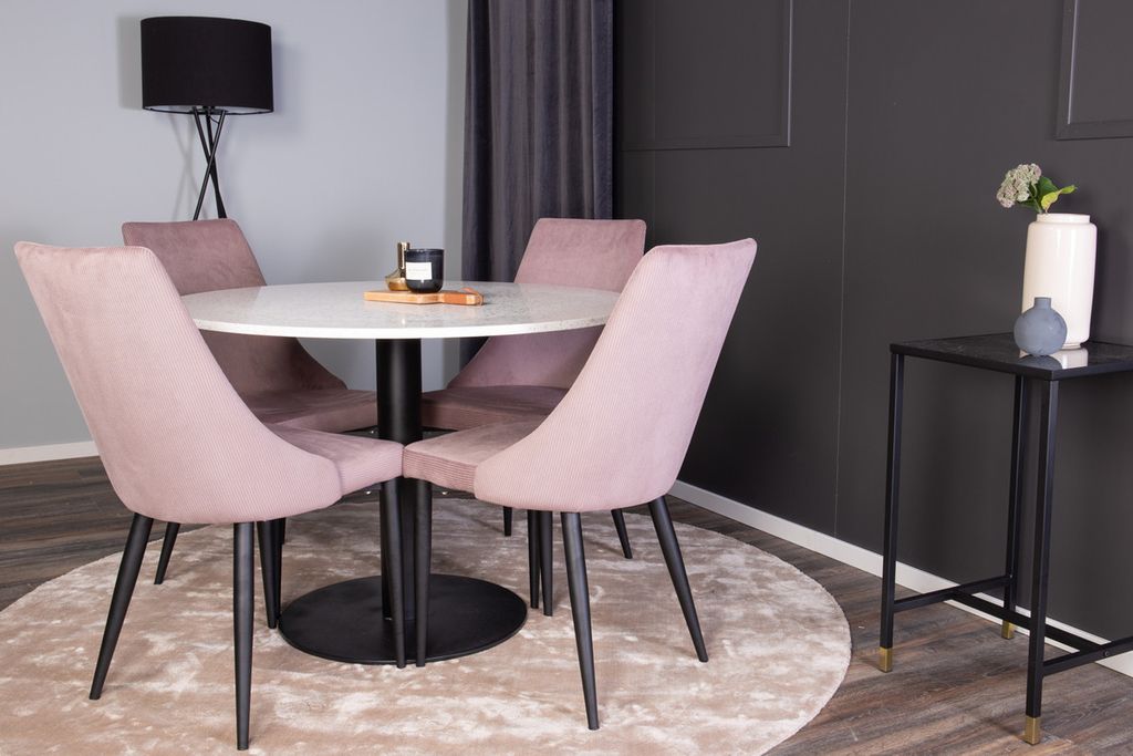 Venture Home Leone & Razzia 4 st Matstolar Gammelrosa + Runt Matbord ⌀106 Vit