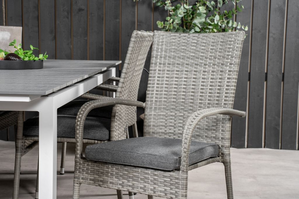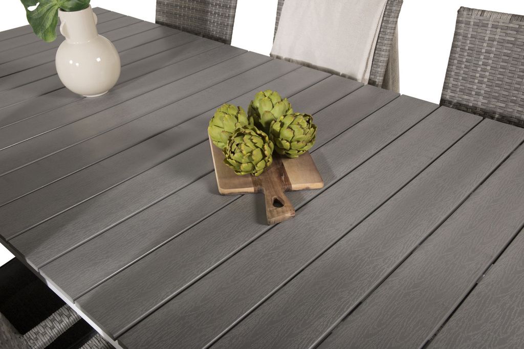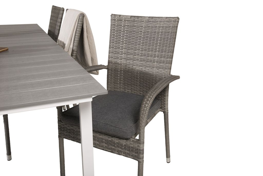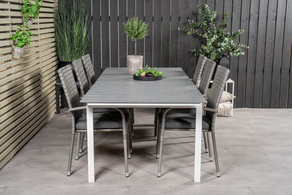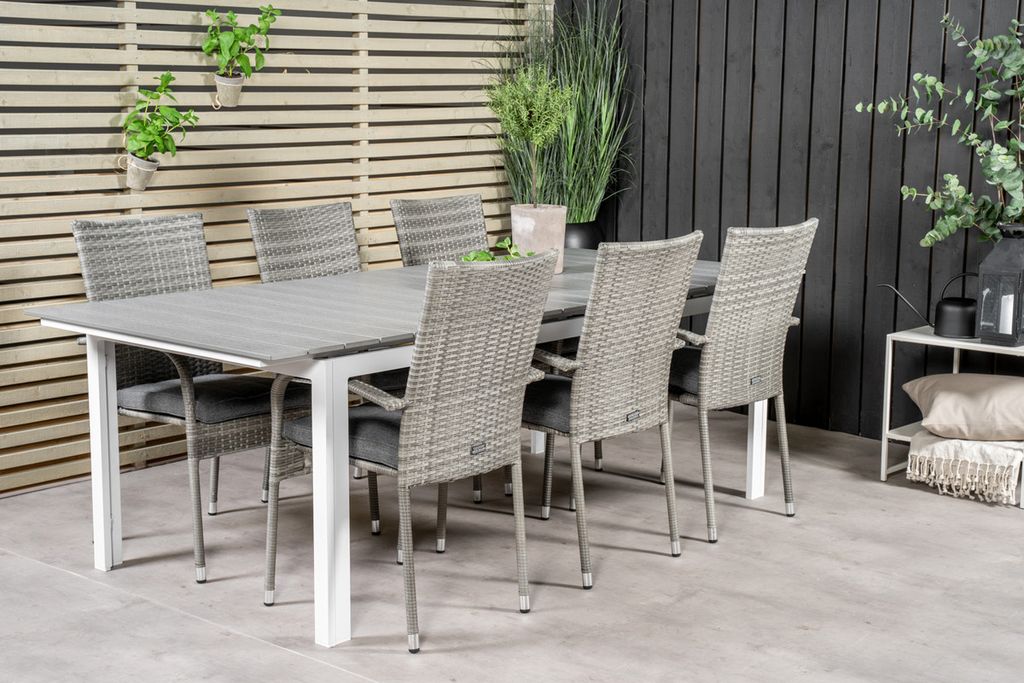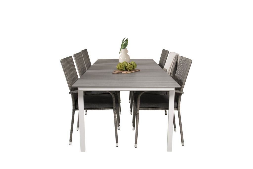 Venture Home Levels & Copacabana Rektangulärt Matbord 160 x 100 Vit + 6 st Reclinerstolar Grå