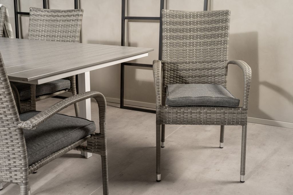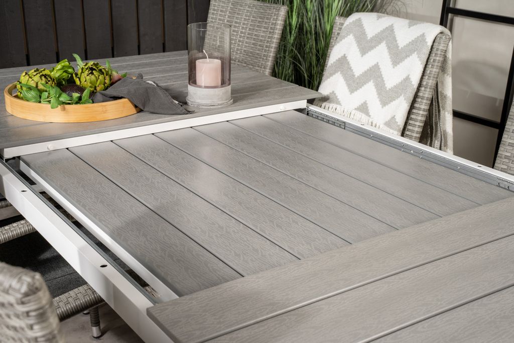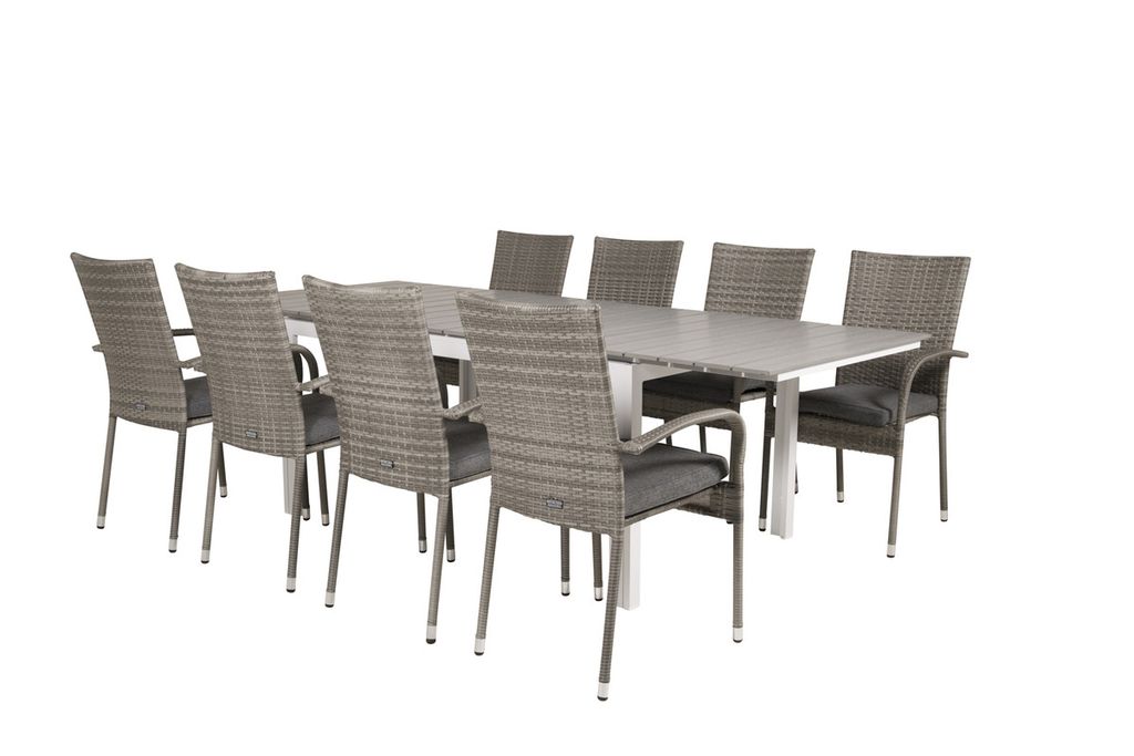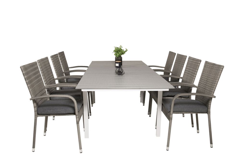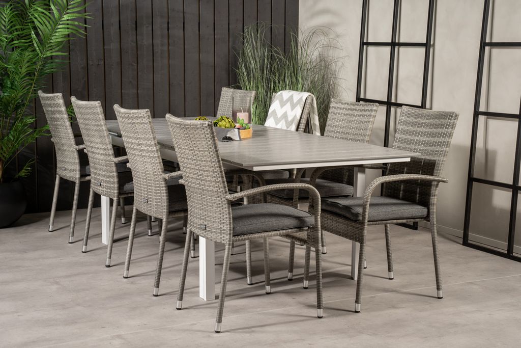 Venture Home Levels & Anna Rektangulärt Matbord 160 x 100 Vit + 8 st Matstolar Grå