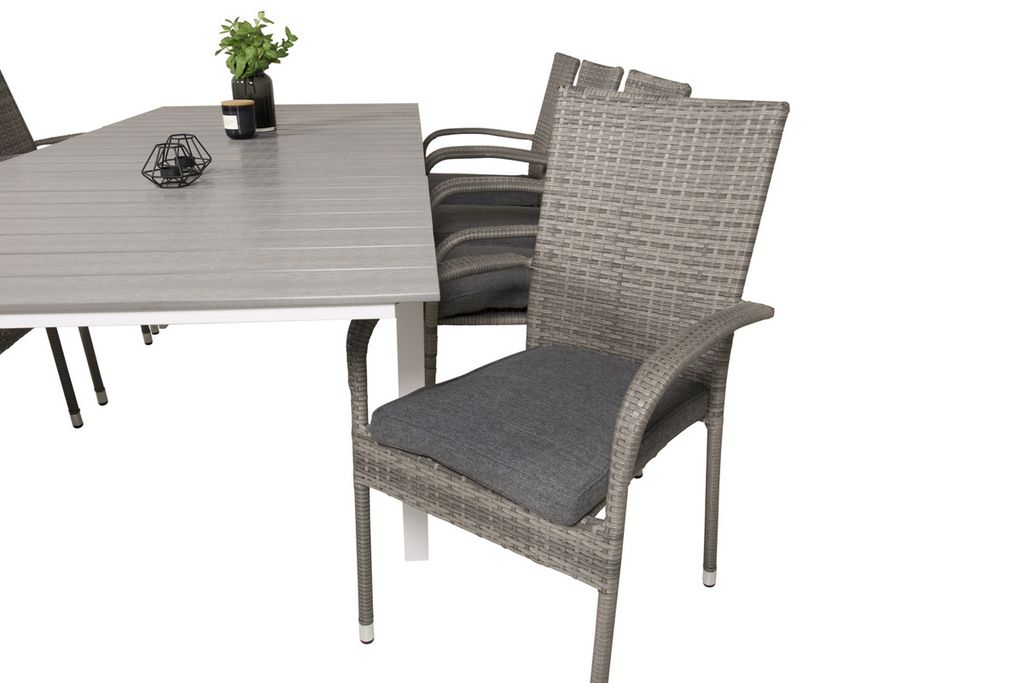 Venture Home Levels & Copacabana Rektangulärt Matbord 160 x 100 Vit + 6 st Reclinerstolar Grå