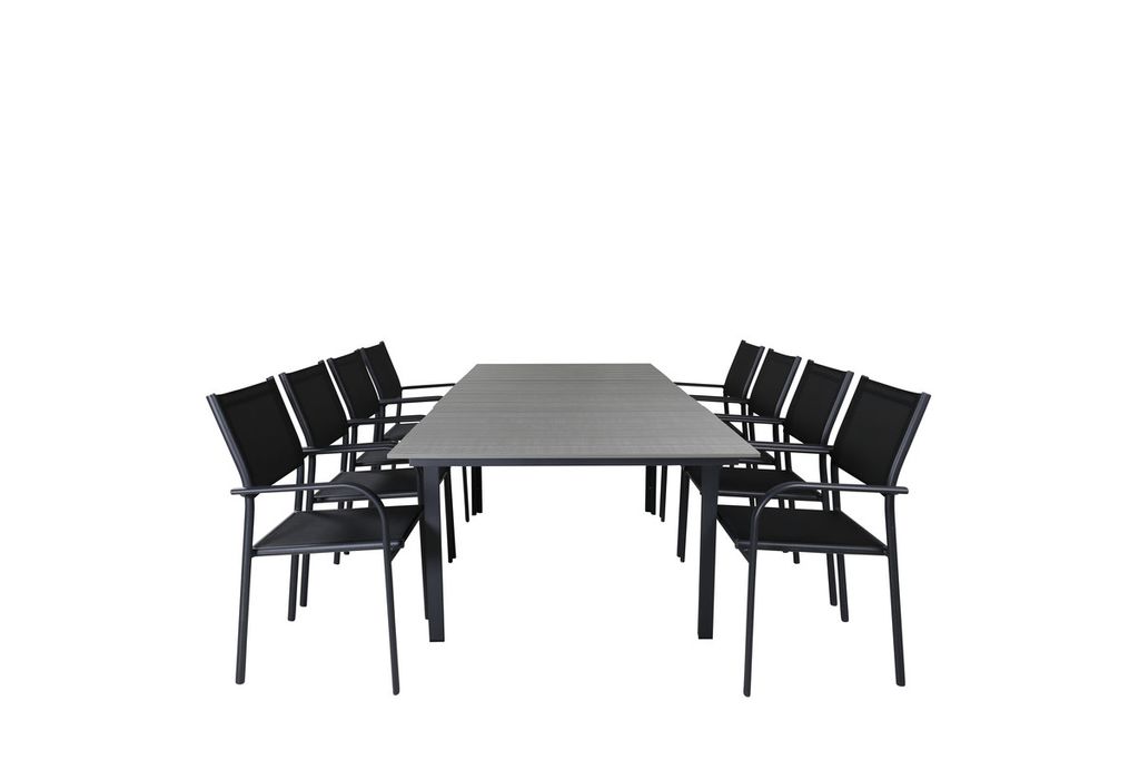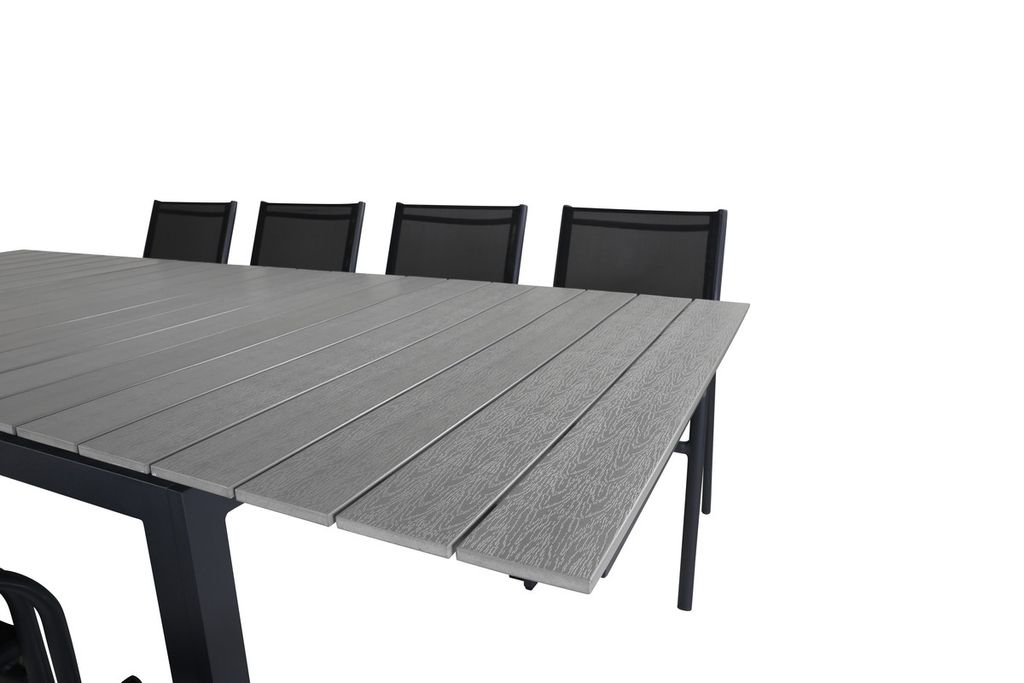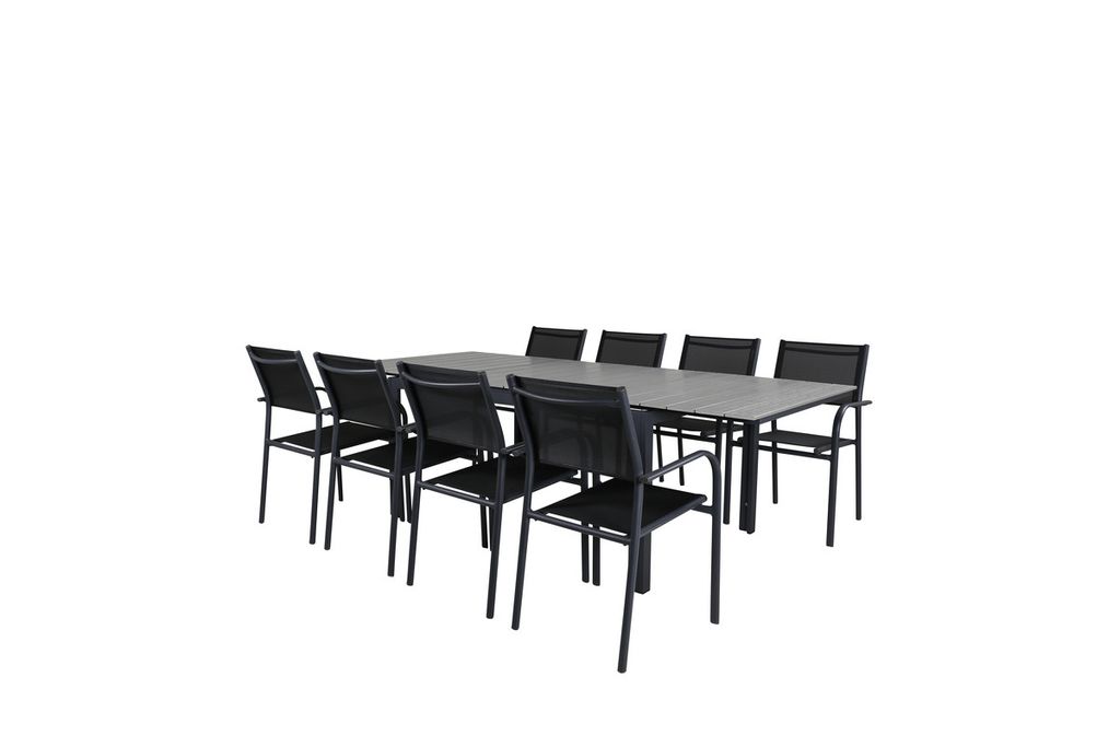 Venture Home Levels & Santorini Rektangulärt Matbord 160 x 100 Svart + 8 st Matstolar Svart