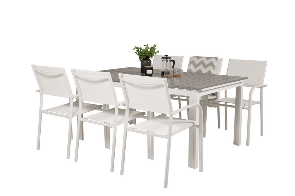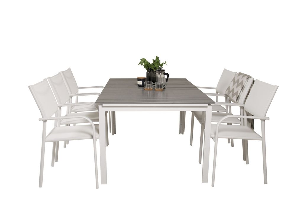 Venture Home Levels & Copacabana Rektangulärt Matbord 160 x 100 Vit + 6 st Reclinerstolar Grå