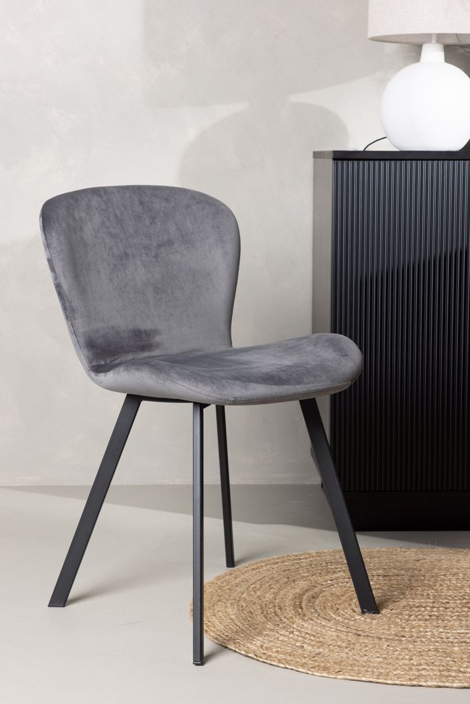 Stolens ben är lätt utsvängda och tillverkade av robust svart metall, vilket inte bara ger ett stilrent utseende utan också stabilitet. Kombinera dessa stolar med ditt matbord för att skapa en inbjudande och modern matplats.