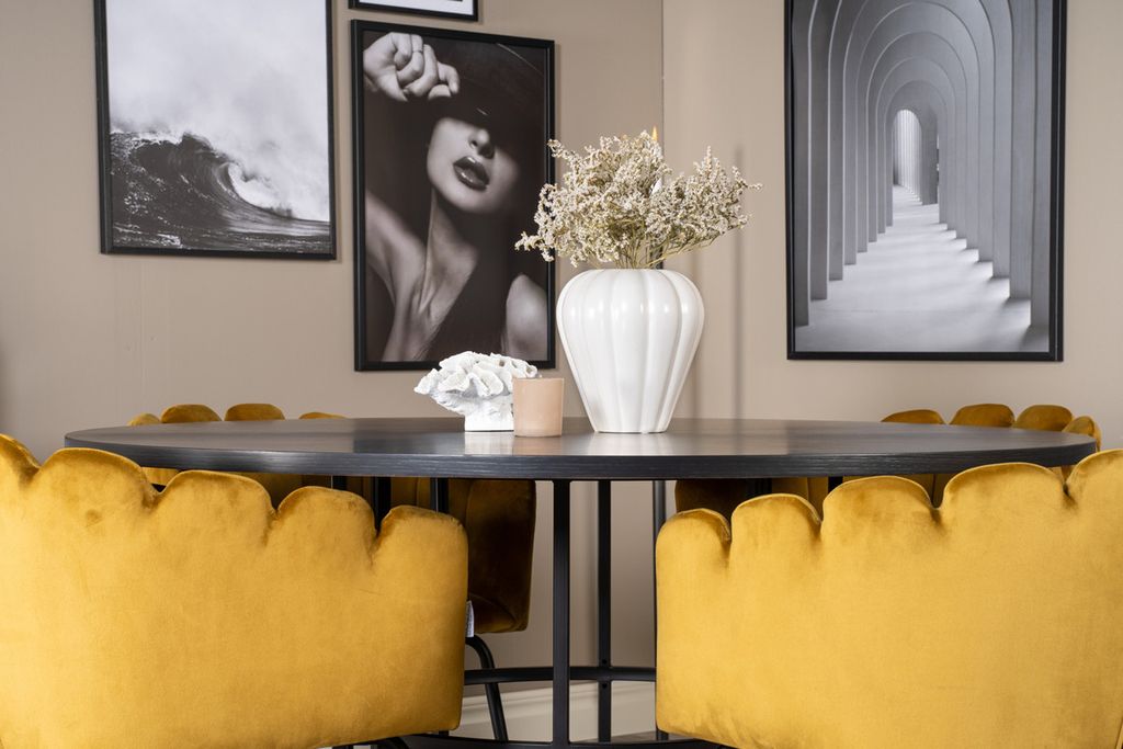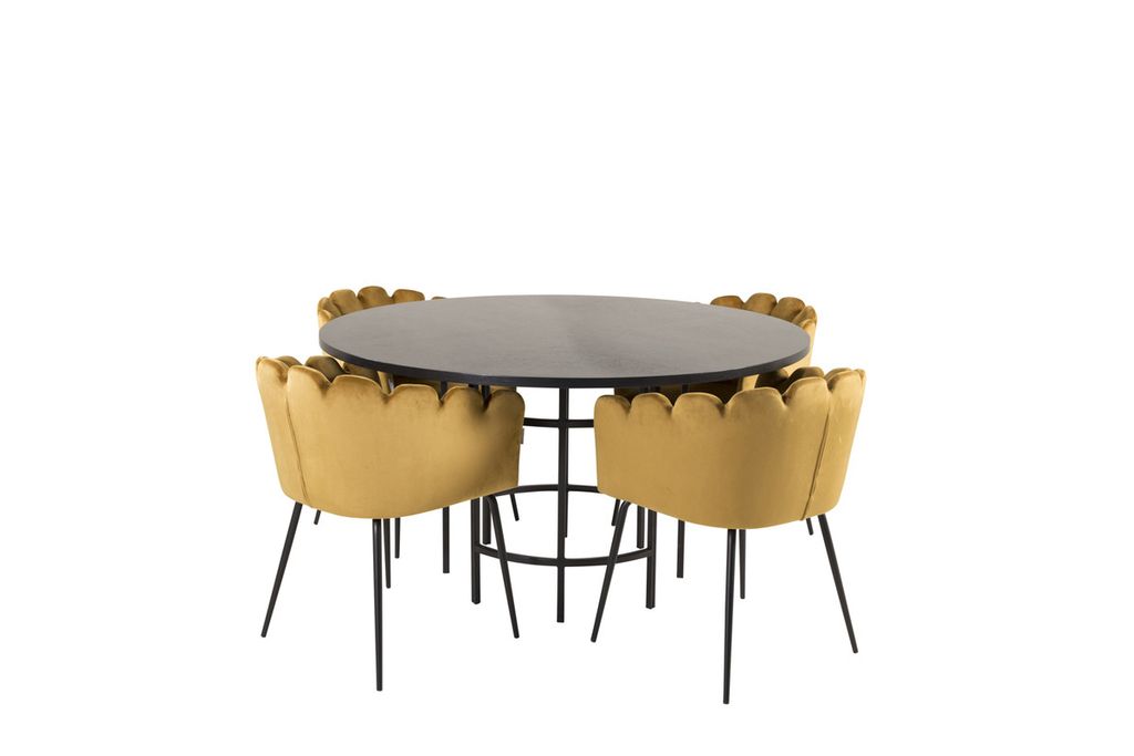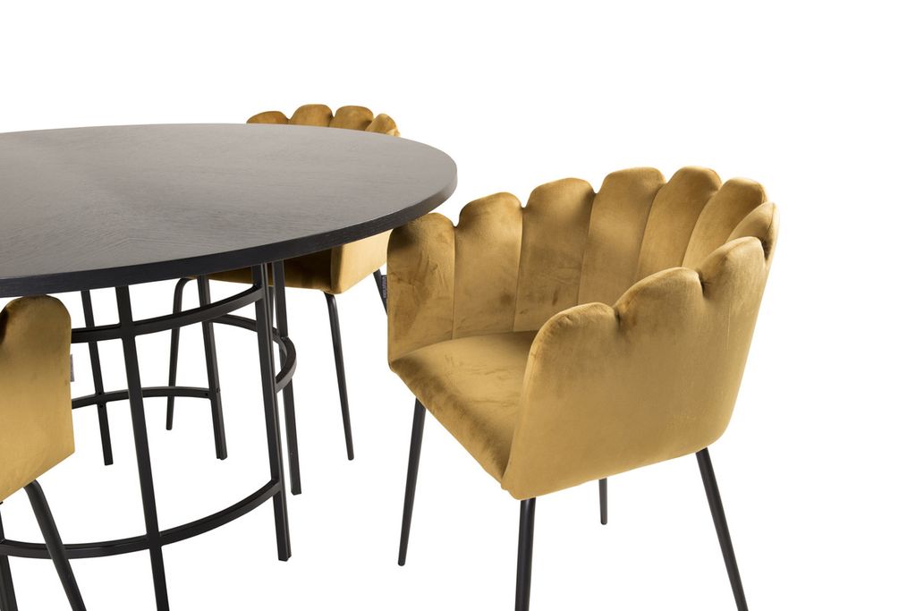 Venture Home Limhamn & Copenhagen 4 st Matstolar Gul + Runt Matbord ⌀140 Svart
