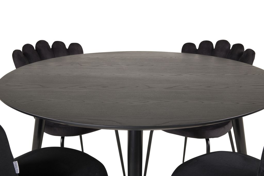 Venture Home Limhamn & Dipp 4 st Matstolar Svart + Runt Matbord ⌀115 Svart