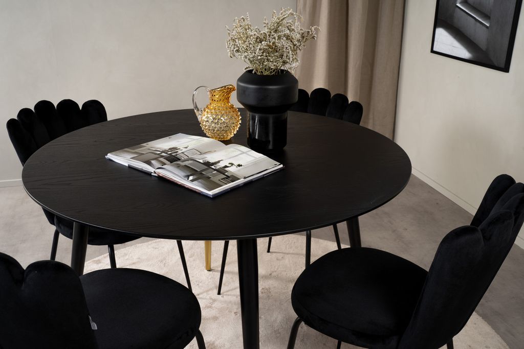 Venture Home Alma & Albany Runt Matbord ⌀120 Svart + 4 st Positionsstolar Svart