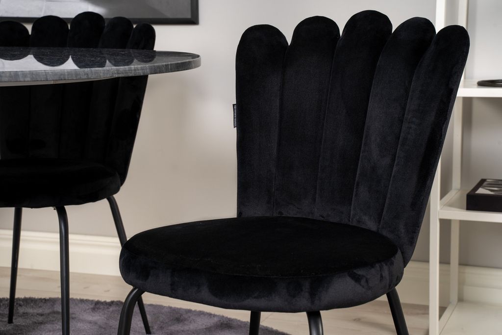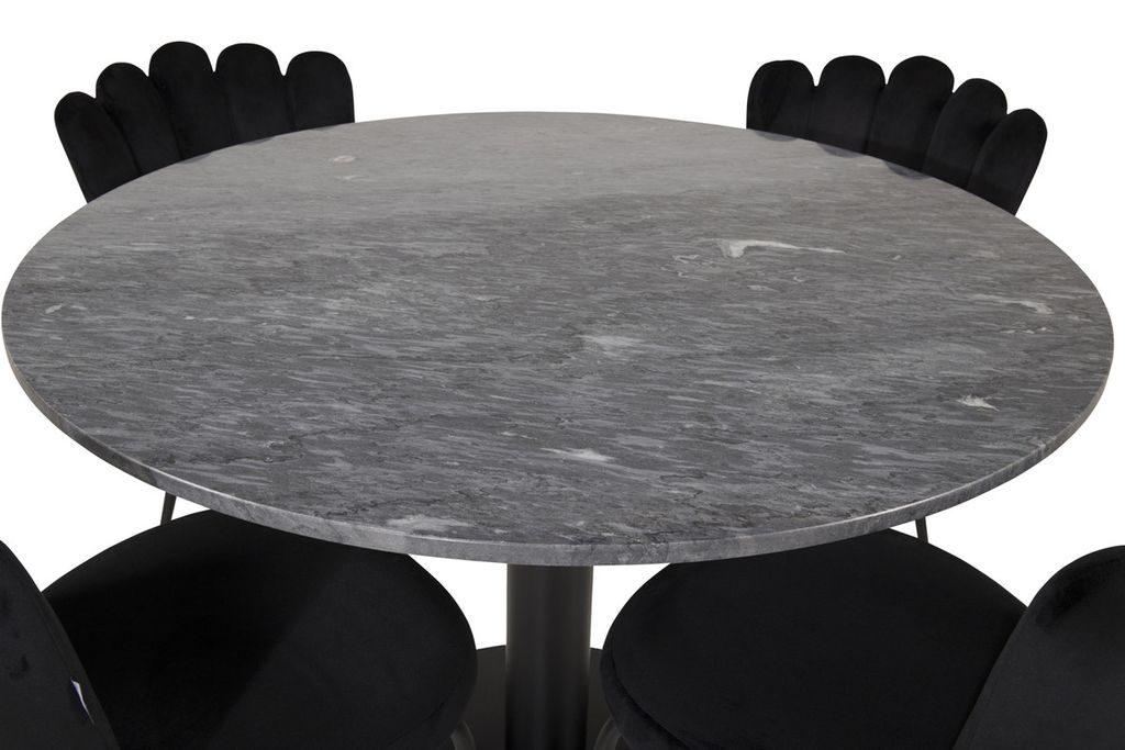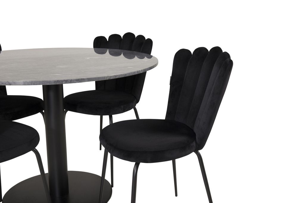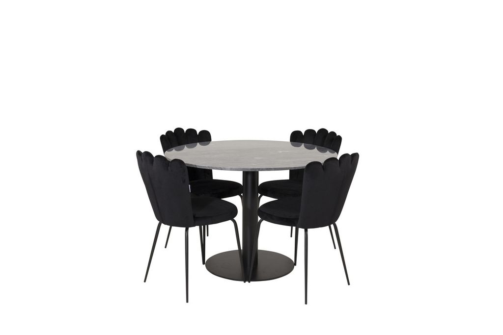 Venture Home Limhamn & Estelle 4 st Matstolar Svart + Runt Matbord ⌀106 Mörkgrå