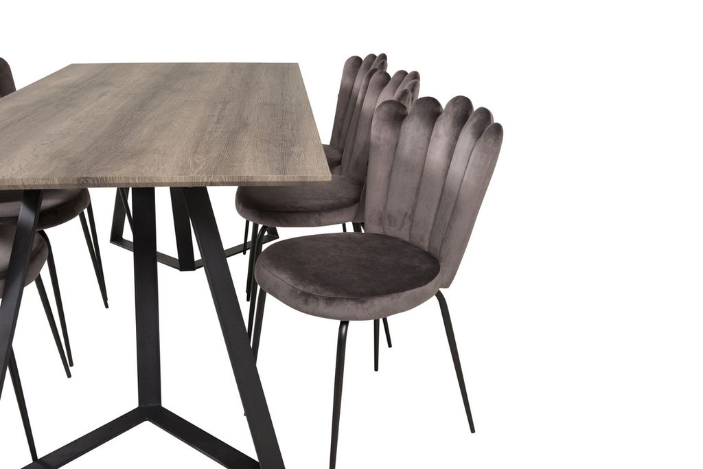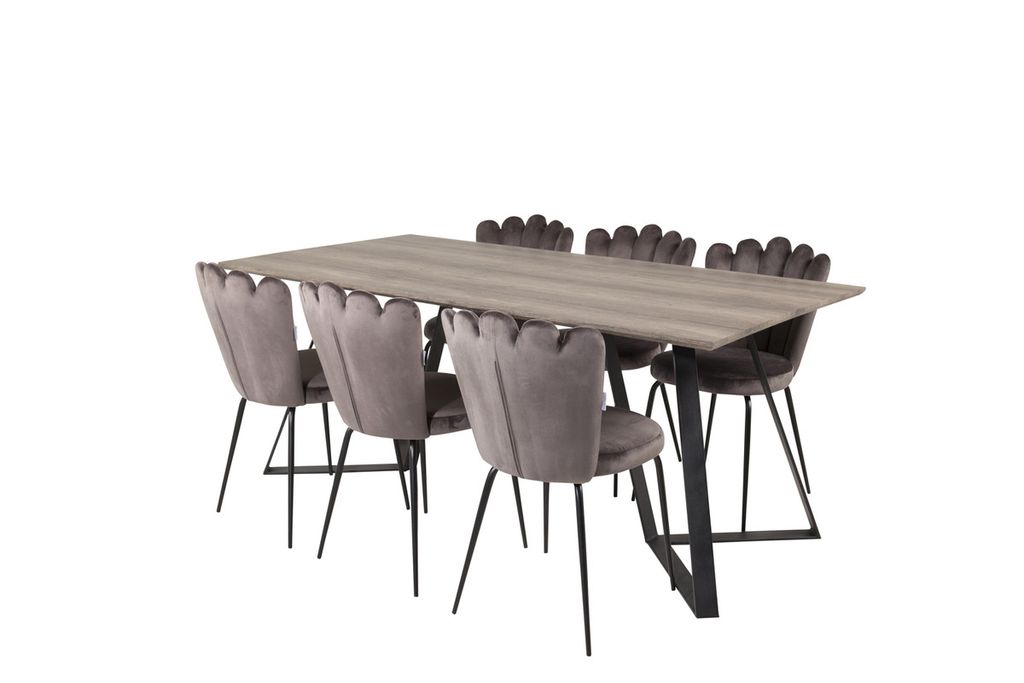 Venture Home Limhamn & Marina 6 st Matstolar Grå + Rektangulärt Matbord 180 x 90 Natur