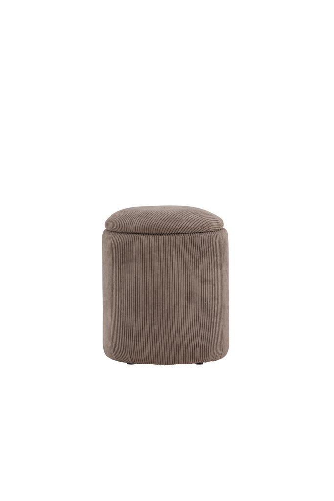 Limpen är en stilfull sittpuff i brun manchester med förvaringsutrymme. Perfekt för små utrymmen.