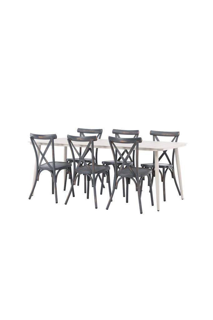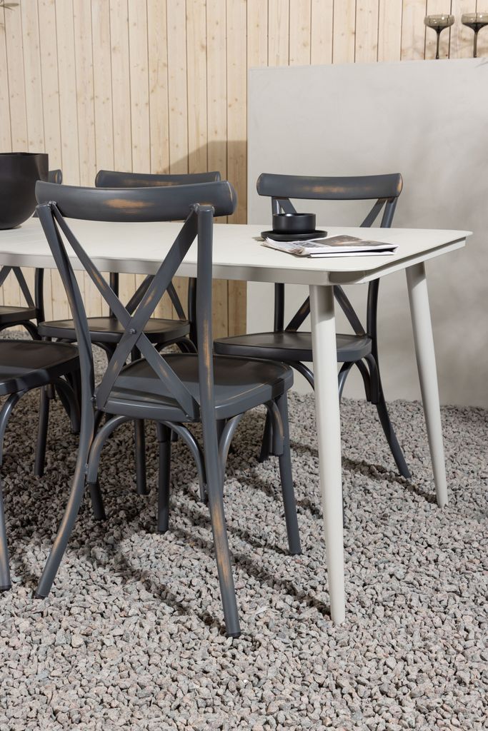 Venture Home Lina Rektangulär Matgrupp kombinerar tidlös elegans med funktionell design. Det rektangulära bordet i en stilren beige nyans mäter 200x90 cm och erbjuder gott om plats för familj och vänner. Bordets minimalistiska design gör det lätt att matcha med olika inredningsstilar.