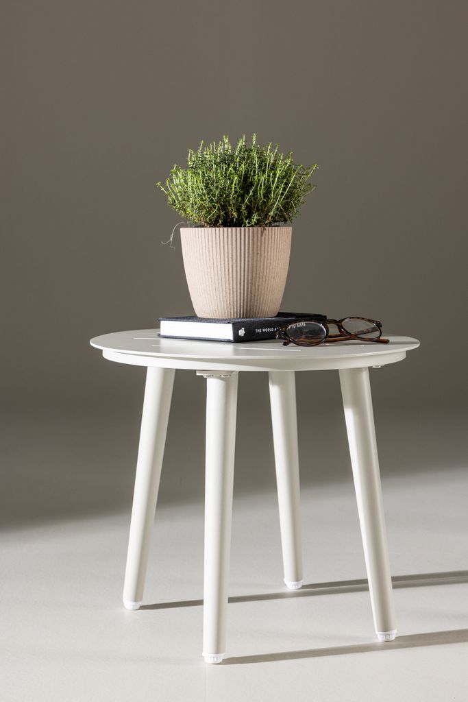 Möt Lina, ditt nya trogna sidobord som förvandlar din miljö med elegans och funktionalitet. Med en diameter på 40 cm erbjuder Lina praktiska användningsmöjligheter, vare sig det är för att hålla böcker och morgonkaffet eller visa upp blommor. Tillverkat i hållbart aluminium, står det emot väder och vind, behåller sin moderna och stilrena design i alla väder. Den eleganta beige färgen gör att bordet smälter in i alla inredningar och stilar.
