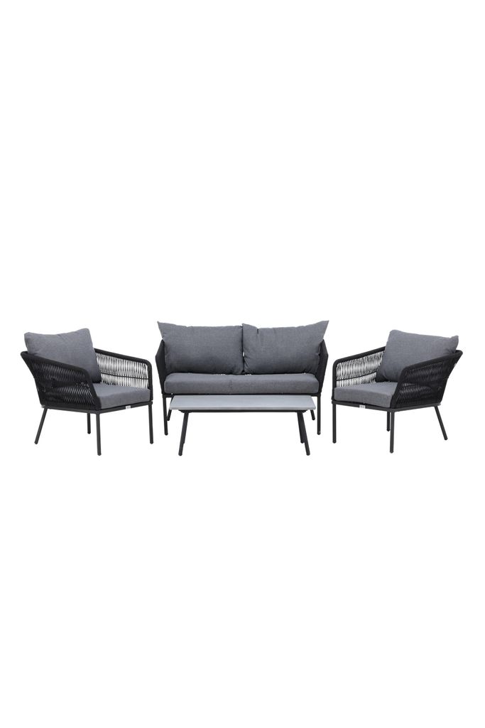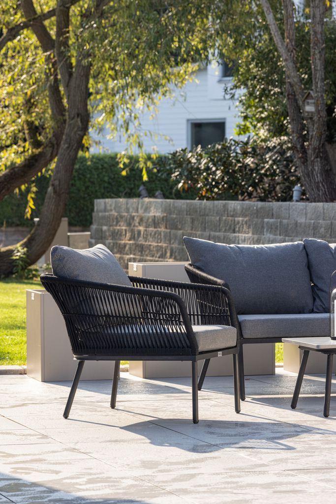 Denna loungegrupp är idealisk för både små och stora utomhusutrymmen, och tack vare den väldesignade kombinationen av material och färger, blir det ett stilfullt inslag i din trädgård eller på din altan.