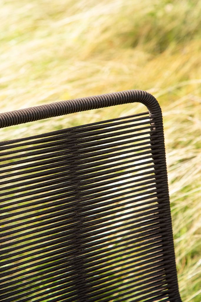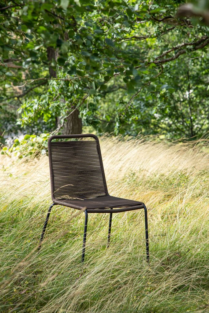 Lindos matstolar i slitstarkt rep och stål, perfekt för uteplatsen. Stapelbara och stilrena i jordnära brunt.
