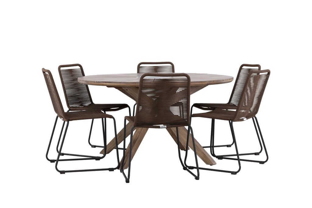 Venture Home Lindos & Rosario 6 st Matstolar Brun/Svart + Runt Matbord ⌀140 Brun