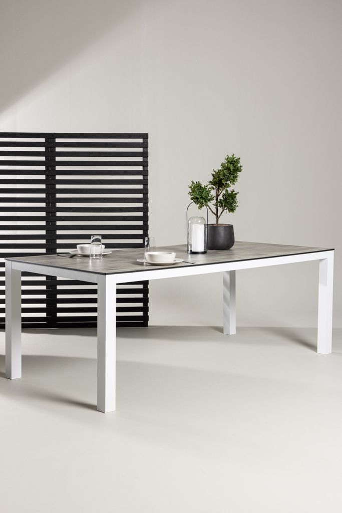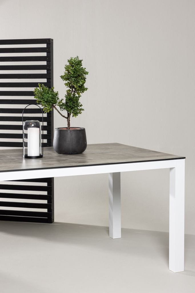 Möblera uteplatsen med det stilrena Venture Home Llama Bord. Med en gråmönstrad bordsskiva i HPL och ett stabilt underrede i vit aluminium, kombinerar detta bord både funktion och design. Dess raka, nordiska former och tidlösa färger gör det till ett långvarigt tillskott till ditt utomhusutrymme.