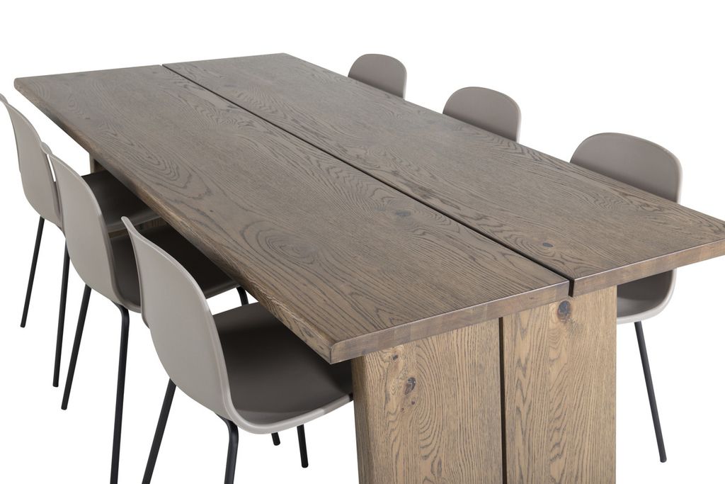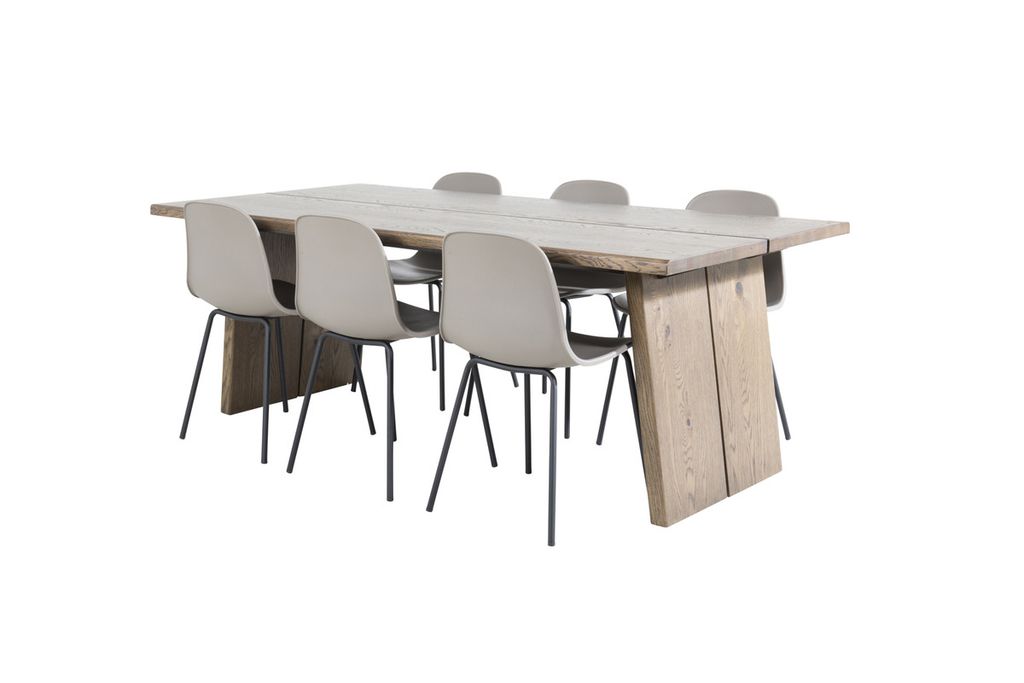 Venture Home Logger & Arctic Rektangulärt Matbord 210 x 100 Natur + Matstolar 6-pack Beige