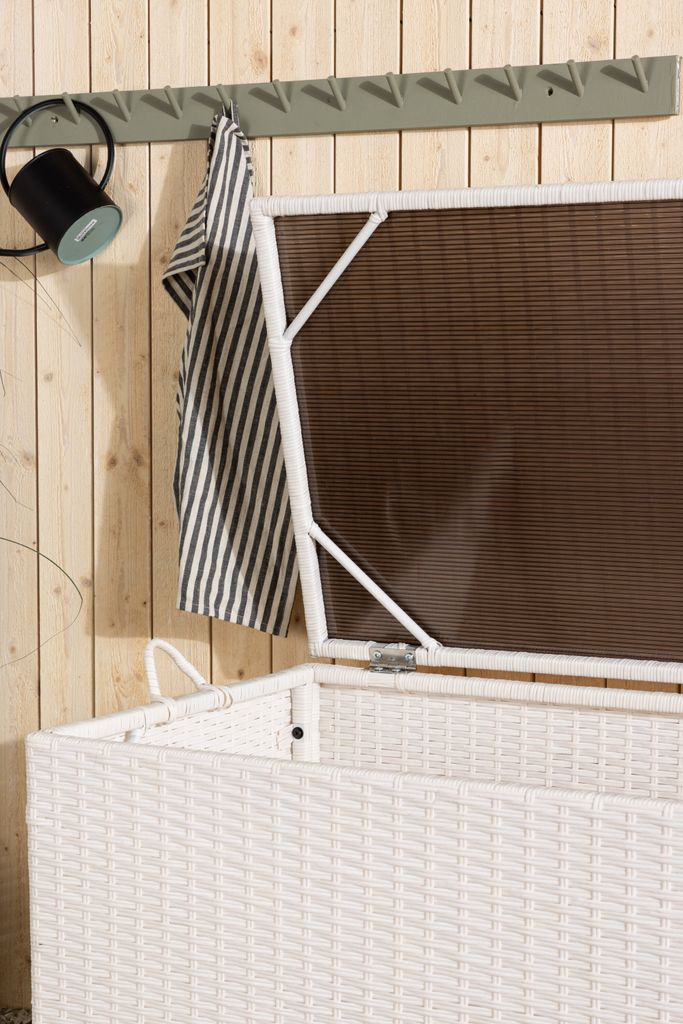 Håll ordning på altanen med London dynbox i slitstark vit rotting. Funktionalitet och stil i ett.