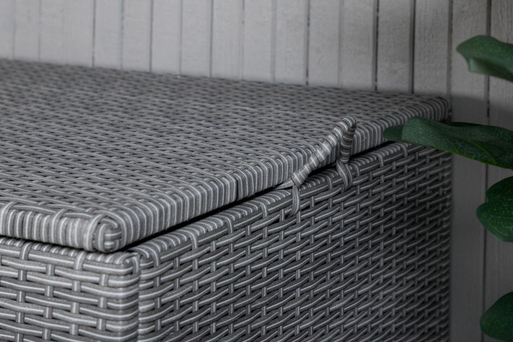 Upptäck Venture Home London Förvaringsbox – en elegant och funktionell lösning för dina dynor. Dynboxen är tillverkad i grå konstrotting, som smälter in perfekt i alla utomhusmiljöer.