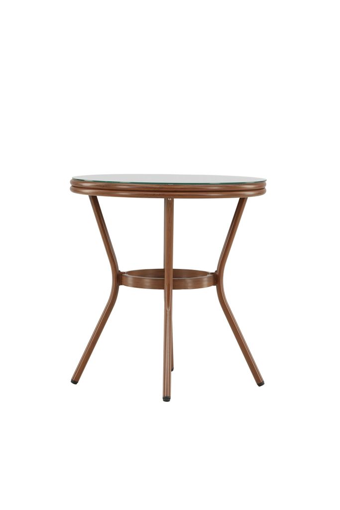 - Material: Bordsskivan i glas ger en touch av elegans, medan den bruna aluminiumramen ger en klassisk och varm känsla.