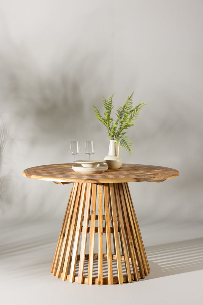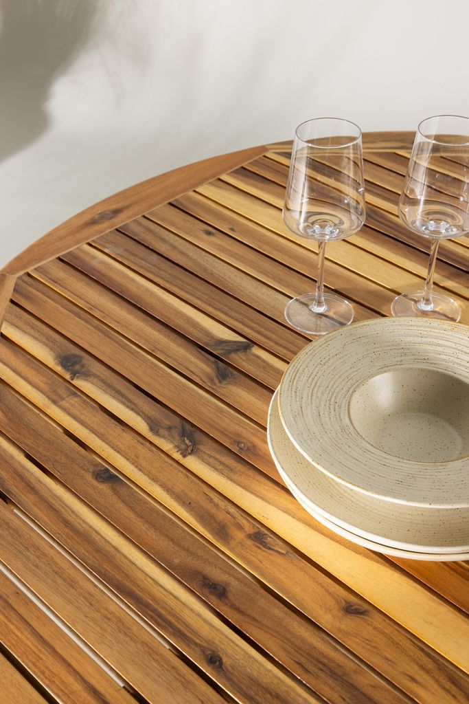 Elegant och robust utomhusbord i Akacia med rund form. Perfekt för sociala måltider i ditt utomhusutrymme.