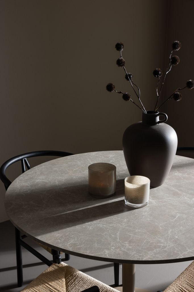 Matbordet Lycke imponerar med sin sofistikerade beige färg och konstruktion i MDF. Med en diameter på 110 cm erbjuder bordet gott om utrymme för måltider och sammankomster, samtidigt som dess harmoniska färg och form tillför en lugn och elegant touch till ditt matrum. Den slitstarka ytan gör bordet lätt att rengöra och underhålla, vilket säkerställer långvarig skönhet och funktionalitet.