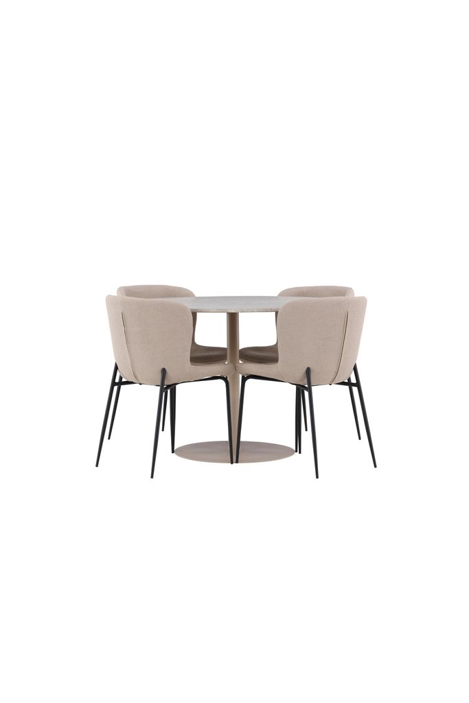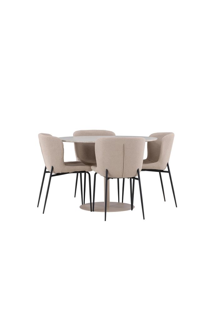 Matbordet Lycke, tillverkat av MDF, har en vacker beige färg som tillför en mjuk och harmonisk atmosfär till ditt matrum. Med en diameter på 110 cm erbjuder bordet gott om plats för mat och samtal, samtidigt som dess runda form skapar en balanserad och inbjudande miljö. Bordets robusta konstruktion säkerställer långvarig användning och stabilitet.