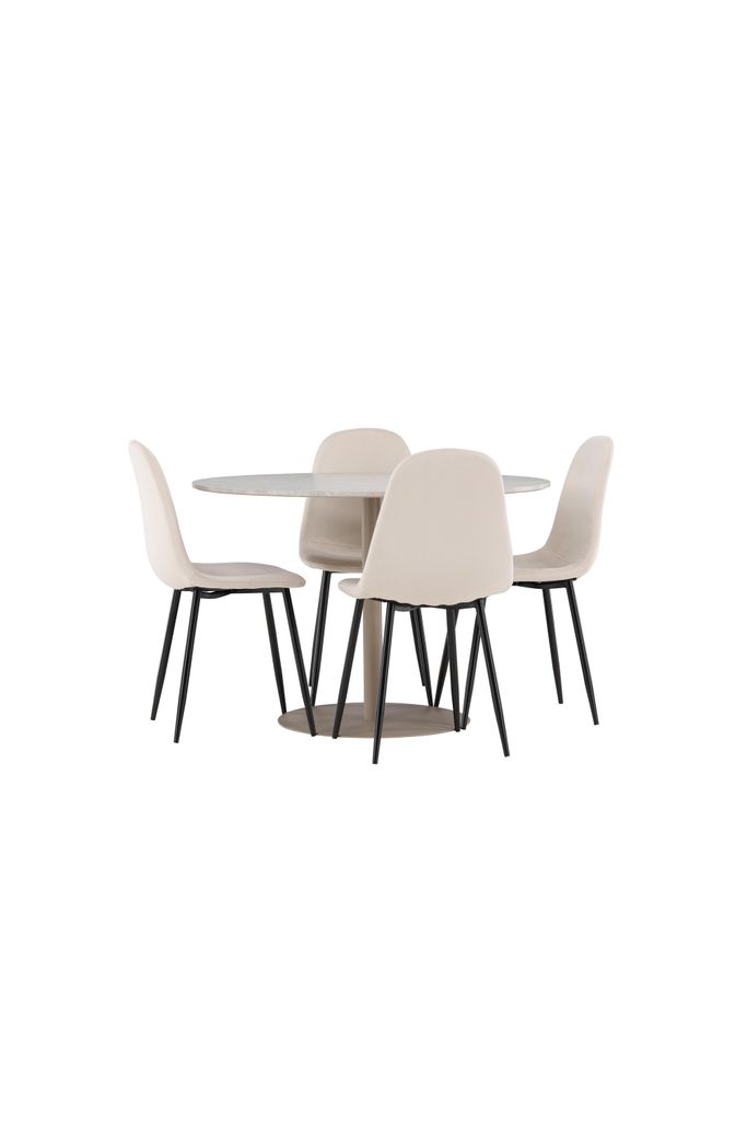 Skapa en elegant matsalsmiljö med Lycke matbord och Polar stolar i beige. Komfort och stil förenas.