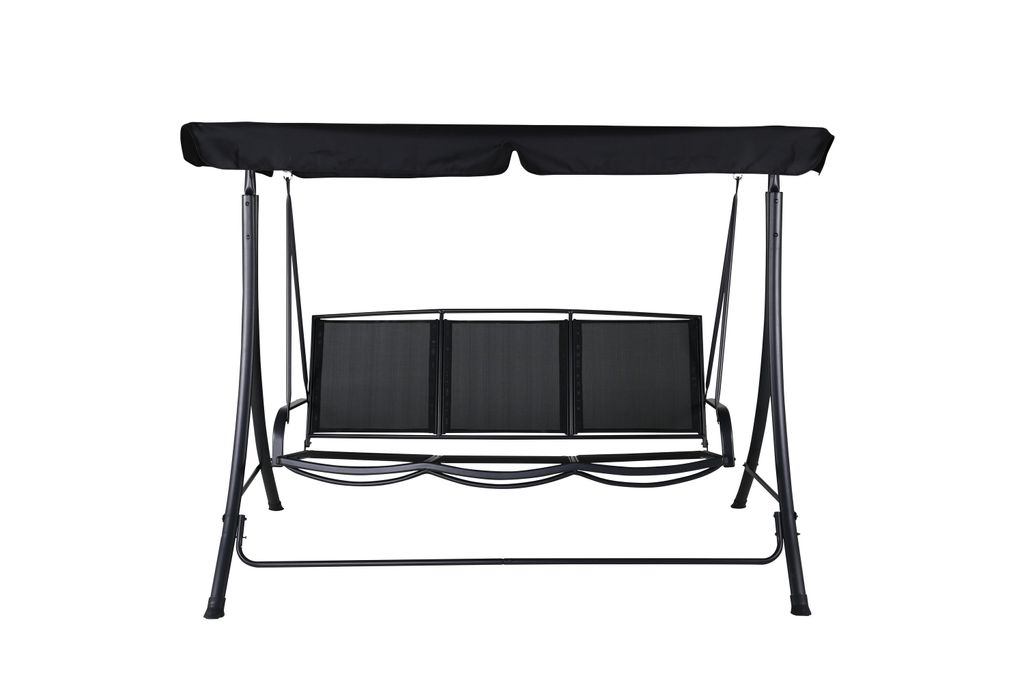 Det vädertåliga taket är tillverkat av en slitstark kombination av PVC och polyester, vilket skyddar mot både sol och lätt regn, så du kan koppla av utan bekymmer. Hammockens minimalistiska design i svart ger den en modern och sofistikerad look.