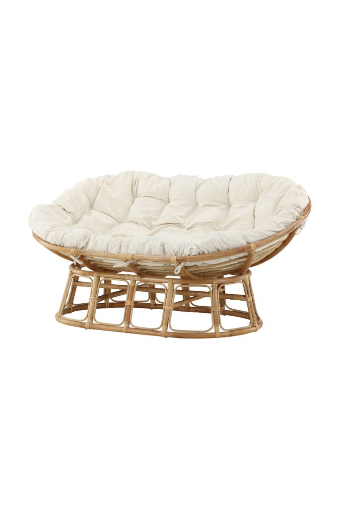Elegant bambustol med mjuk dyna, perfekt för trädgården. Enkel att flytta och bekväm för hela familjen.