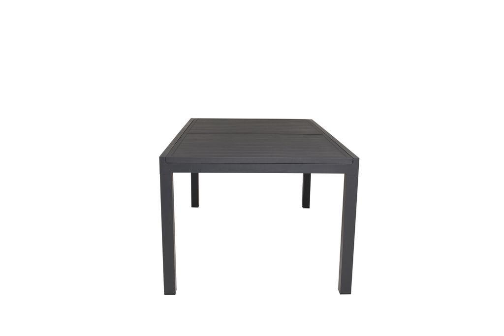 Stilrent och slitstarkt matbord i svart aluminium, perfekt för uteplatsen. Förlängningsbart och lätt att kombinera med olika stolar.