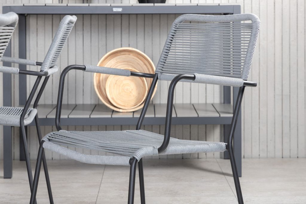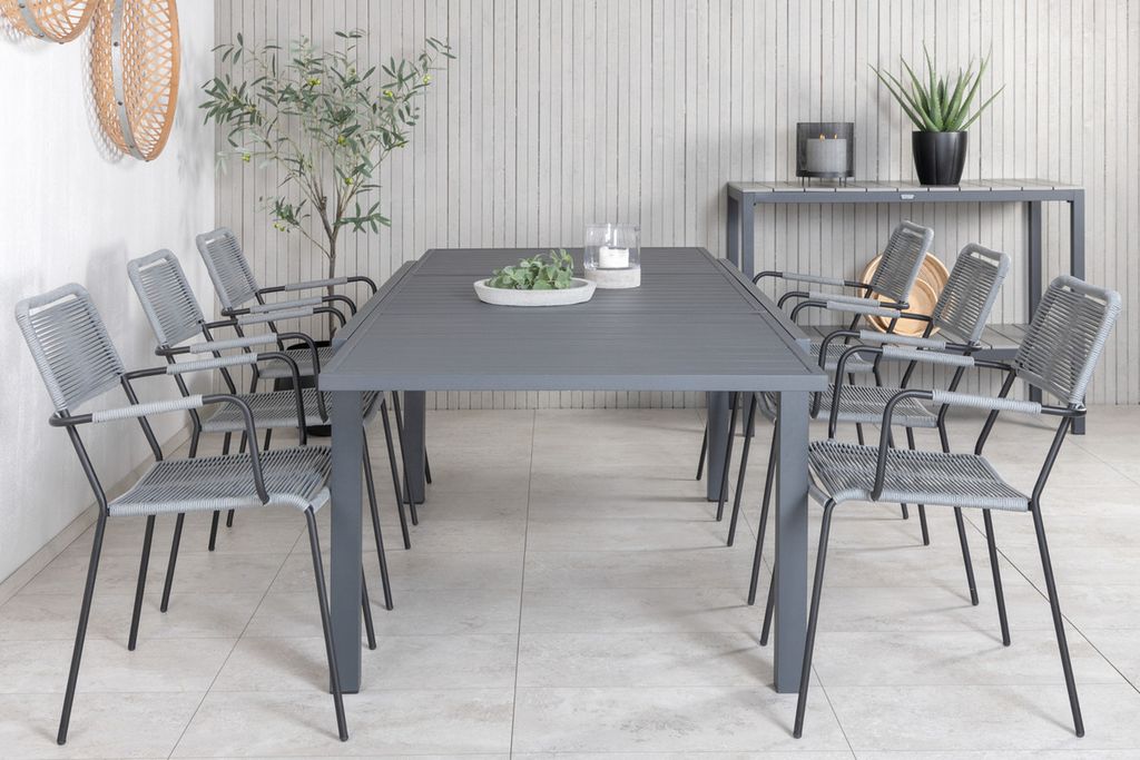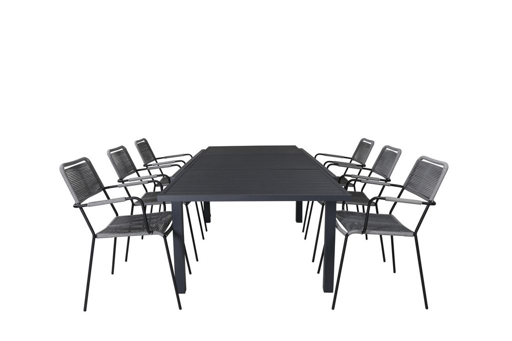 Venture Home Marbella & Lindos Rektangulärt Matbord 160 x 100 Svart + 6 st Matstolar Grå