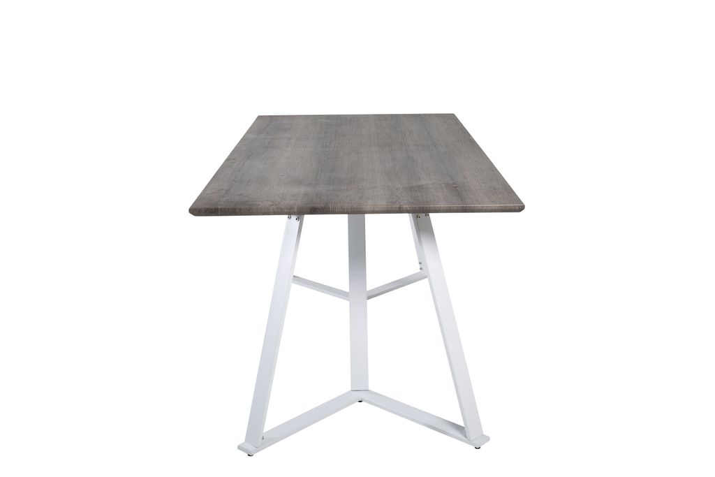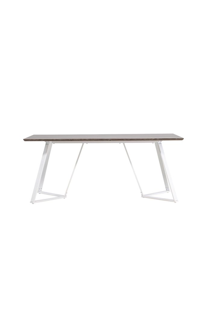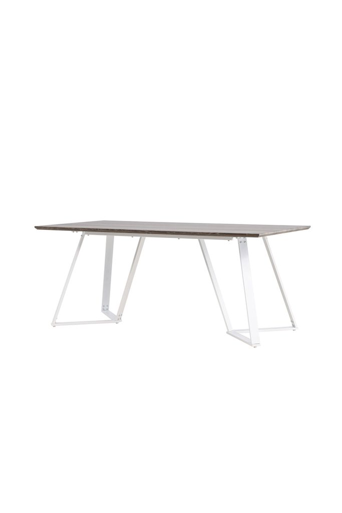 Stilrent matbord med MDF-skiva i jordnära kulör och vita metallben. Perfekt för att skapa en personlig inredning.
