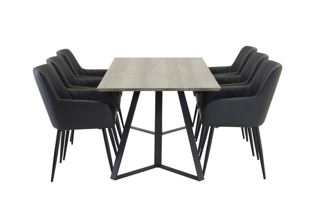 Venture Home Marina & Comfort Rektangulärt Matbord 180 x 90 Natur + 6 st Matstolar Svart