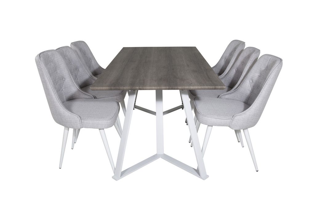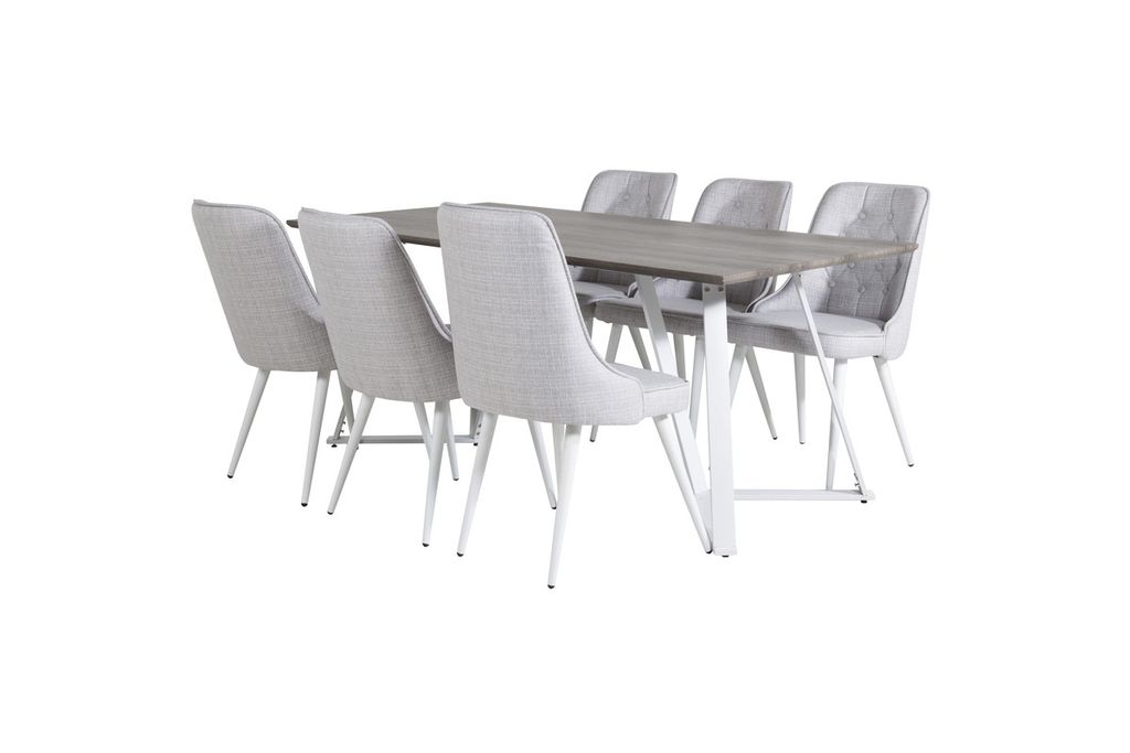 Venture Home Marina & Velvet Deluxe Rektangulärt Matbord 180 x 90 Grå + 6 st Matstolar Ljusgrå