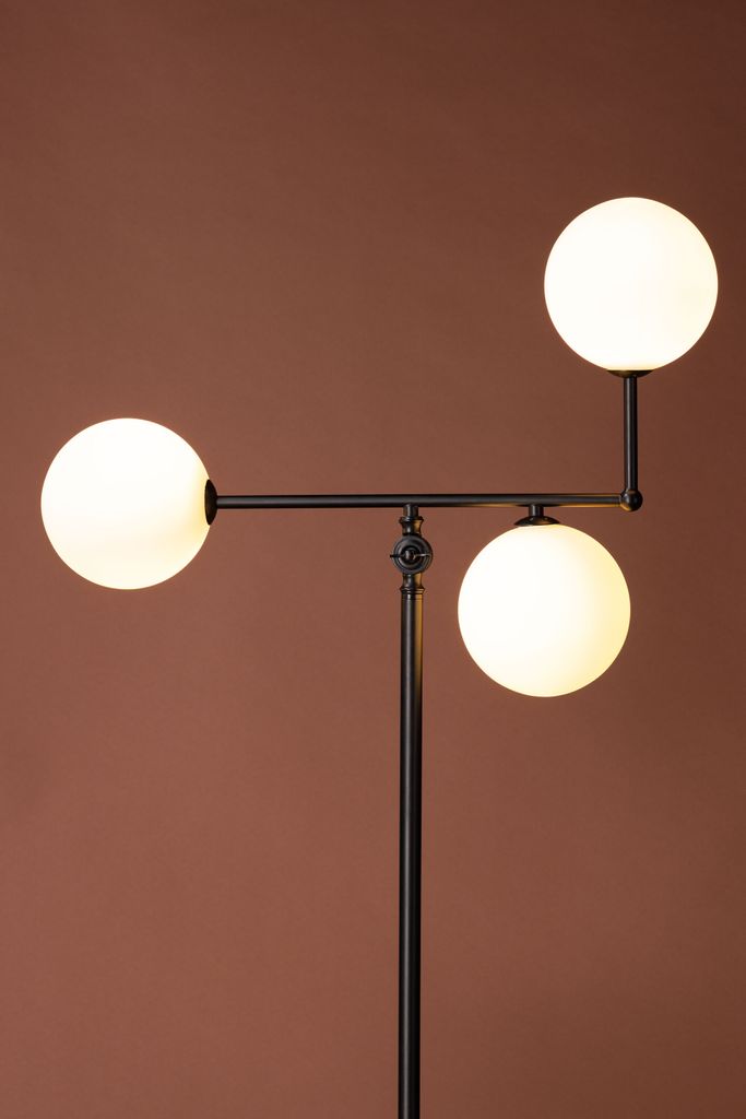 Upptäck Venture Home Marsan Golvlampa, en belysningsikon som klättrar på trendlistorna med sin stilrena nordiska design. Denna golvlampa har en elegant svart fot i hållbart järn och tre vackra glaskulor i vitt, som sprider ett behagligt och mysigt sken i ditt rum. De nätta armarna som håller ljuskällorna ger lampan ett modernt och stilrent uttryck.