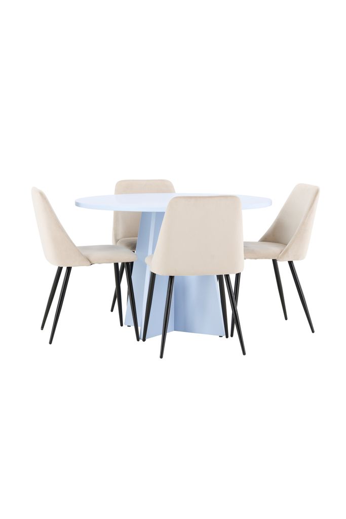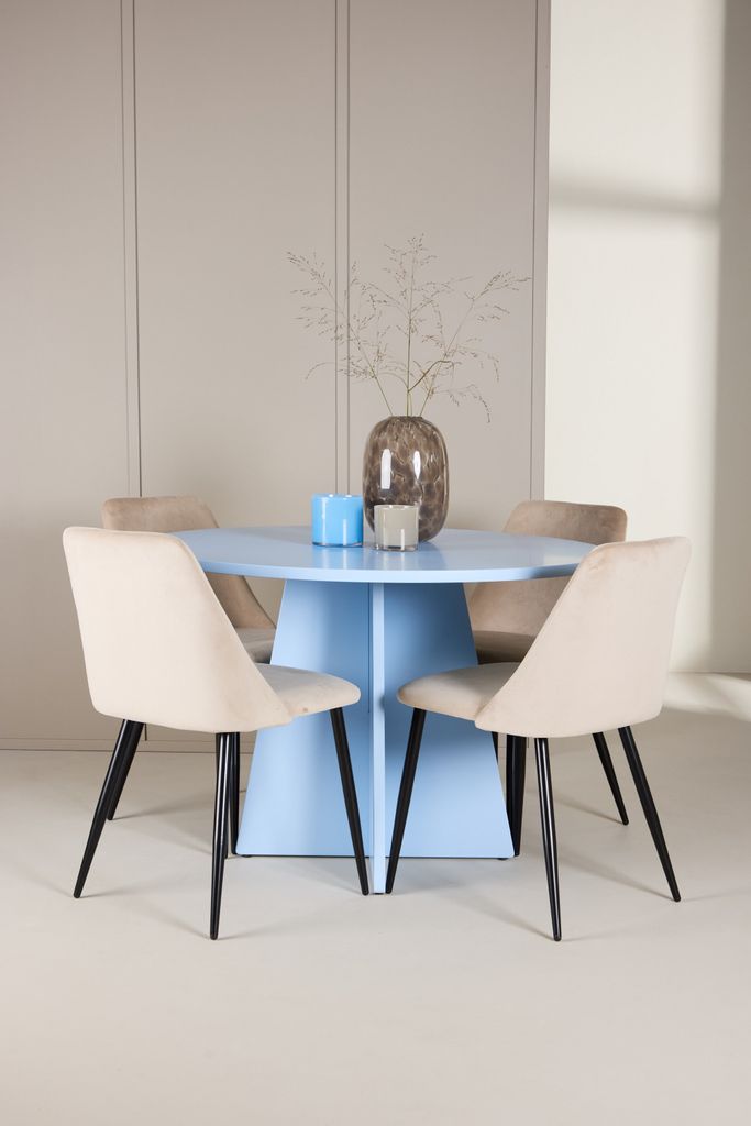 Matbordet Bootcut står ut med sin runda design och mjuka babyblå färg. Bordet har en generös diameter som skapar en luftig känsla, idealisk för både vardagliga måltider och festliga tillställningar. Bordet blir ett iögonfallande inslag i ditt hem, och skapar en inspirerande miljö.