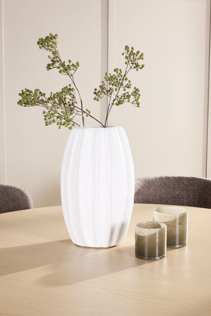 Kombinera stolarna med matbordet Copenhagen, en tidlös möbel som utstrålar skandinavisk minimalism och funktionell design. Bordsskivan i en vacker vittvättad finish framhäver träets naturliga struktur och skapar en ljus, luftig känsla. Med en generös diameter på 140 cm erbjuder Copenhagen gott om plats för både vardagsmåltider och festliga tillställningar. Den runda formen bjuder in till naturlig interaktion och gemenskap, vilket gör bordet idealiskt för sociala tillfällen.
