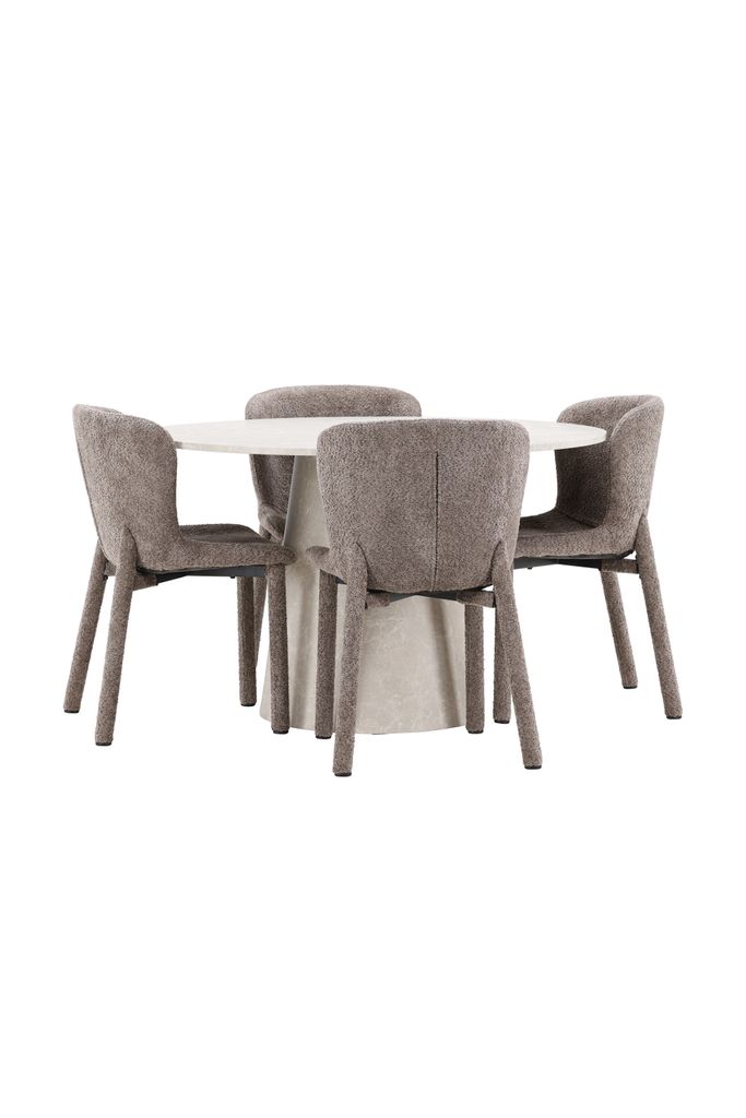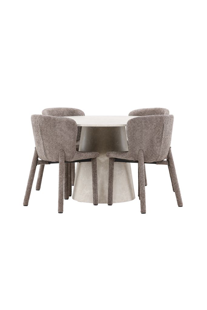 Tillsammans skapar Lanzo och Astoria en harmonisk matplats som förhöjer varje måltid med sin sofistikerade atmosfär. Den eleganta marmorkänslan och lyxiga bouclén gör denna grupp till ett måste för stilrena inredningar.
