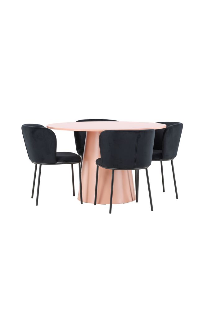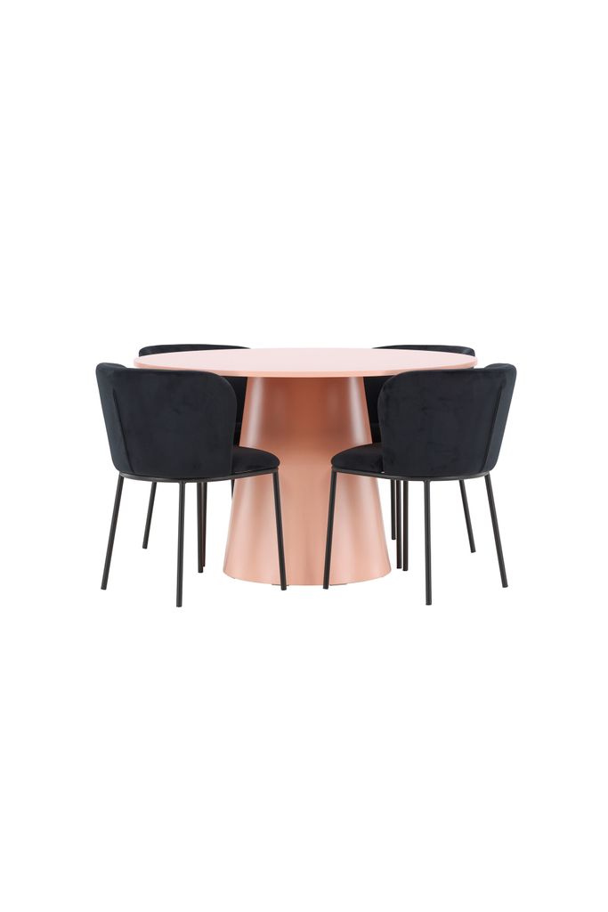 Förvandla din matplats med Lanzo bord och Edina stol i elegant peach och svart sammet.