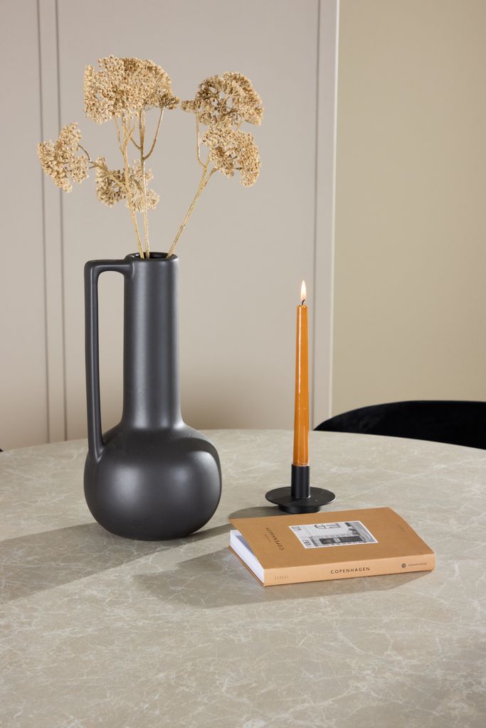 Lanzo Matbord har en rund, beige marmorerad yta som efterliknar natursten och ger en sofistikerad, tidlös känsla. Den eleganta designen bidrar till en känsla av gemenskap, idealisk för både intima middagar och större tillställningar. Bordets släta yta är inte bara vacker utan också lätt att rengöra, vilket gör det praktiskt och funktionellt.