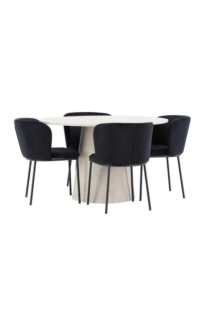 Tillsammans med bordet kommer Edina Stol, klädd i lyxigt svart sammet. Stolens eleganta design och mjuka textur säkerställer en bekväm sittupplevelse. Den djupa svarta färgen tillför en touch av glamour, samtidigt som den ergonomiska formen och robusta konstruktionen garanterar hållbarhet och komfort under långa middagar.