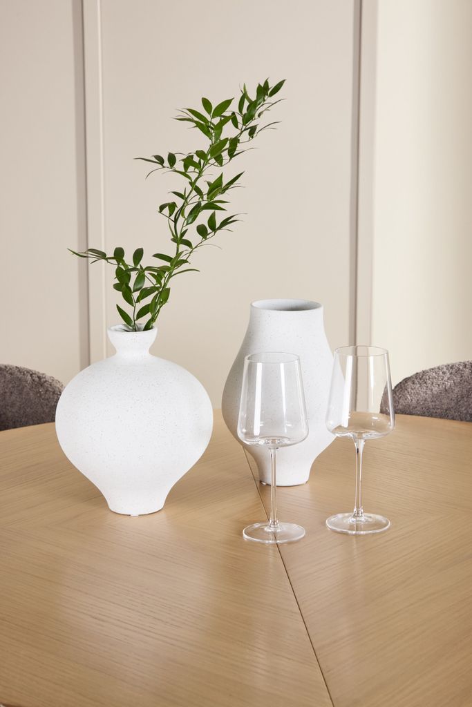 Matbordet Strada är tillverkat i vittvättat fanerträ, vilket framhäver träets naturliga struktur och ger en ljus, luftig känsla i rummet. Med en diameter på 120 cm passar det för vardagsbruk, men tack vare den smidiga förlängningsfunktionen kan bordet enkelt utökas till 170 cm för större sammankomster. Den stabila konstruktionen säkerställer att bordet förblir en tillförlitlig och vacker del av ditt hem i många år.