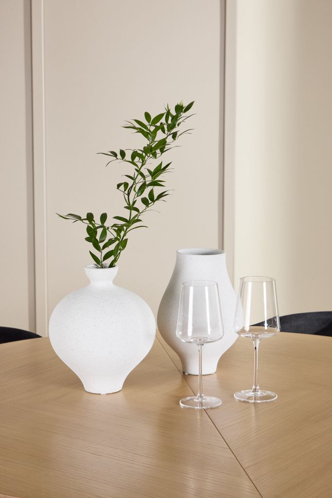 Matbordet Strada är tillverkat av vittvättat fanerträ som framhäver den naturliga trästrukturen och ger en ljus och luftig känsla. Bordet har en diameter på 120 cm men kan enkelt förlängas till 170 cm för fler gäster. Dess tidlösa design och stabila konstruktion gör det till en pålitlig mittpunkt i ditt hem.